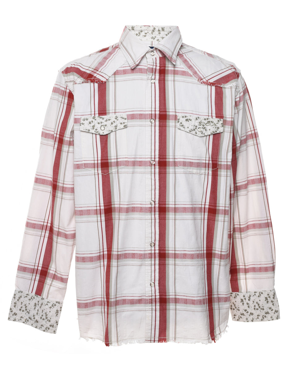 Vintage Checked Red & White Contrast Pocket Western Shirt - L