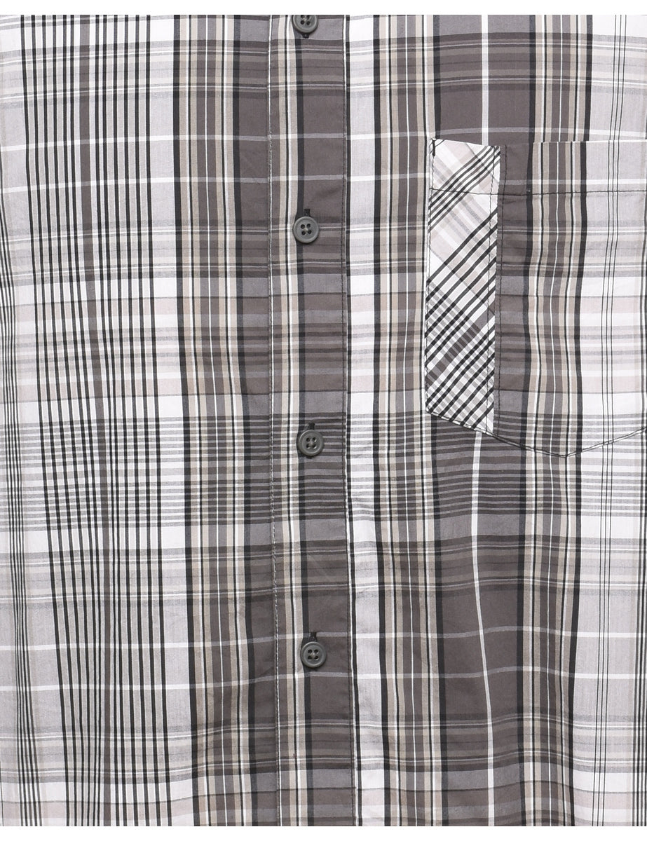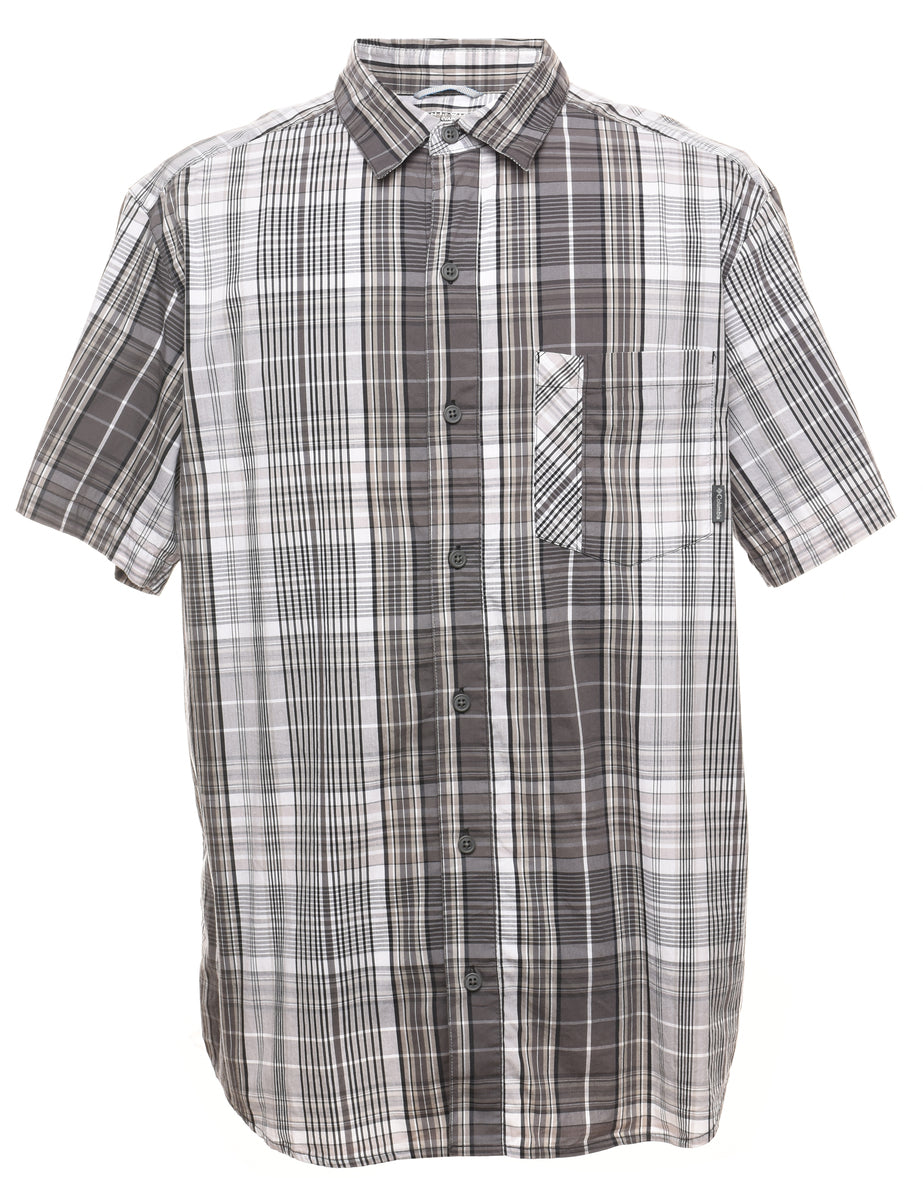 Short sleeve checked shirt. Columbia in grey with one pocket.