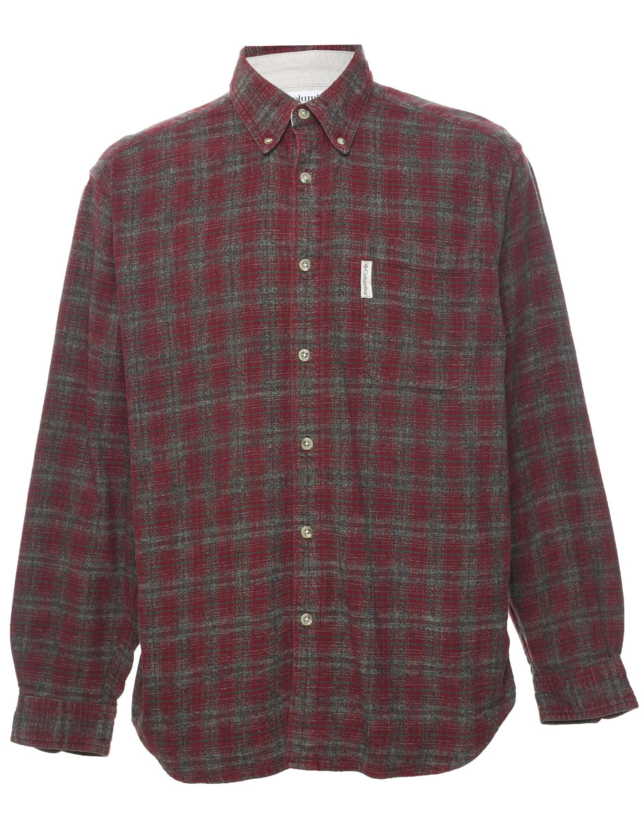 Long sleeved checked shirt. Comes in maroon with one pocket.