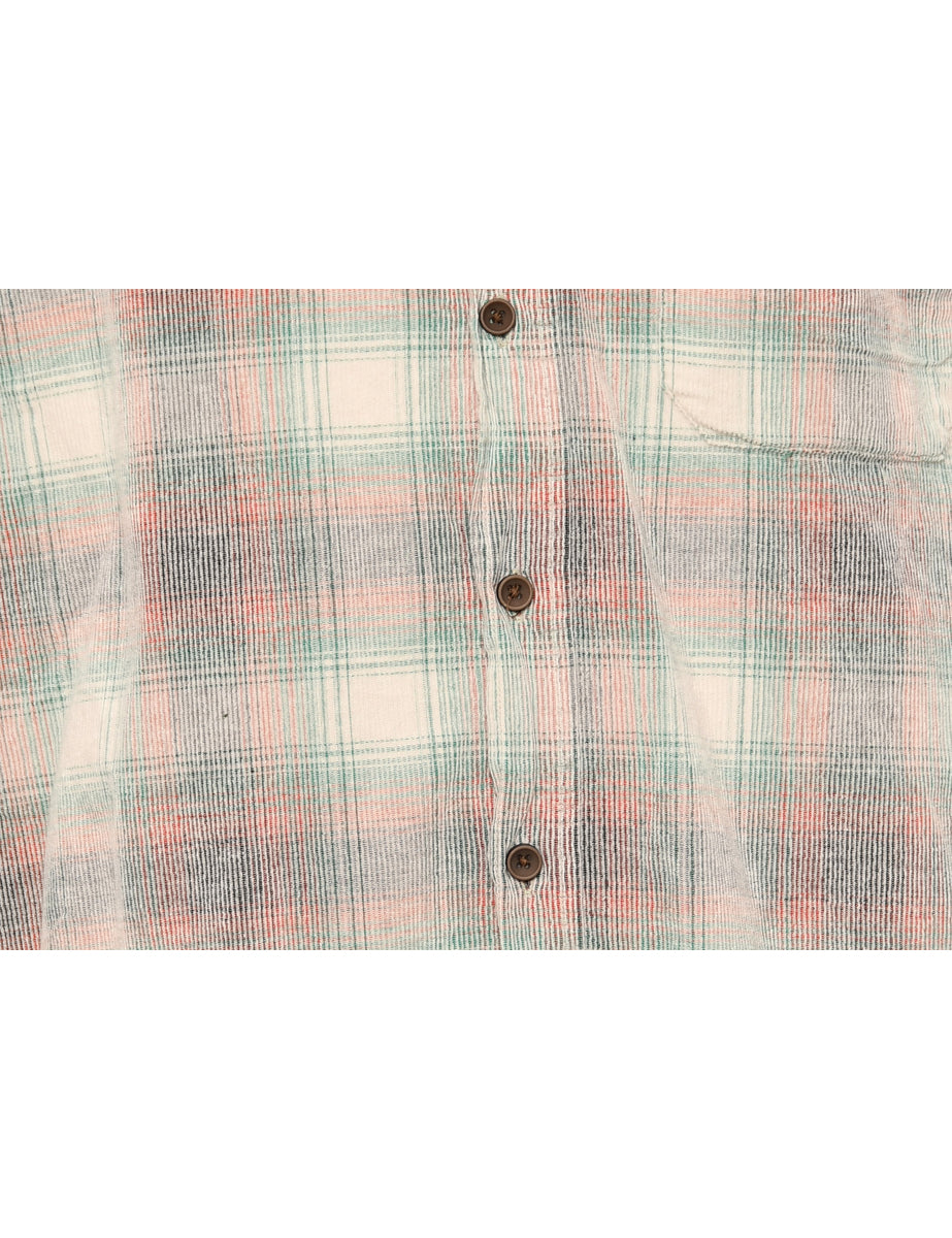 Corduroy shirt with checked pattern comes in grey with one pocket.