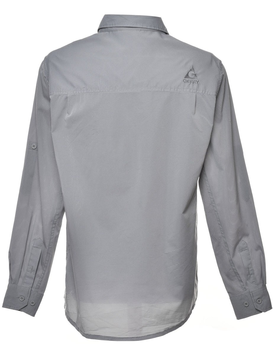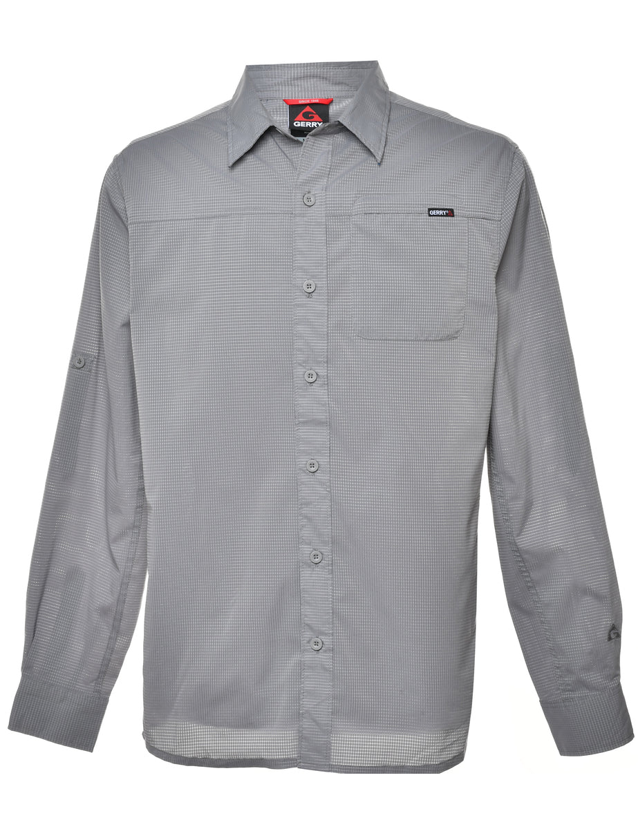 Long sleeved checked shirt. Comes in grey with a classic collar and one pocket.
