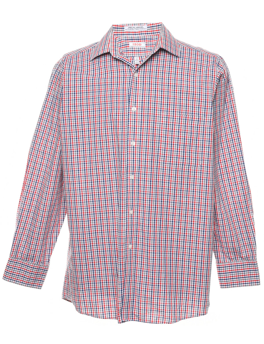 Long sleeved multi-colour Izod checked shirt with a classic collar and one pocket.