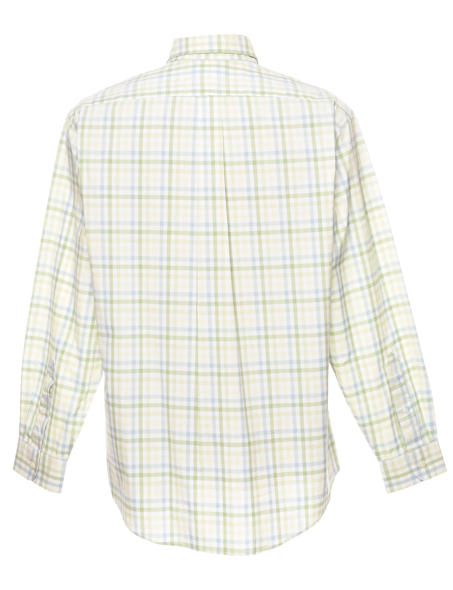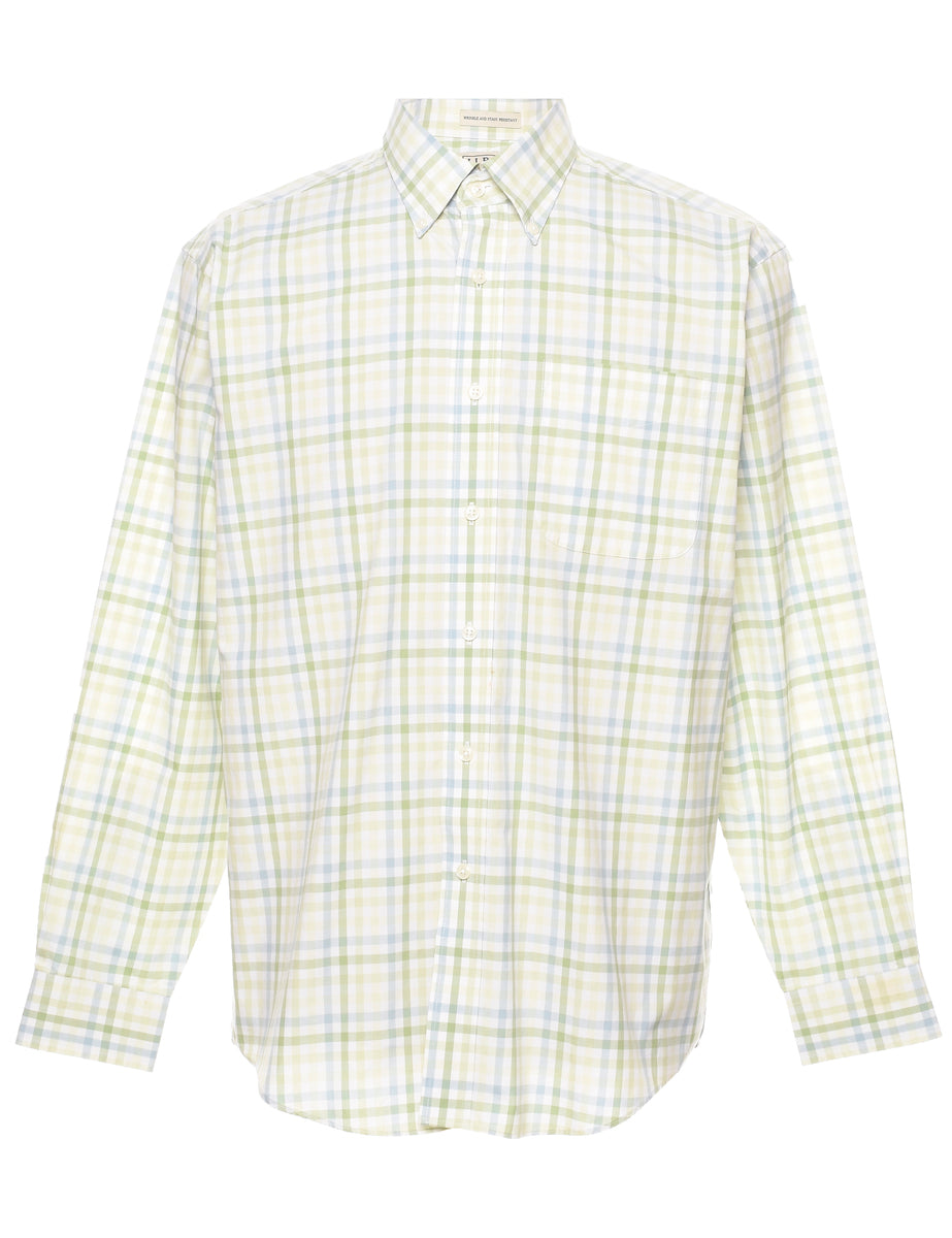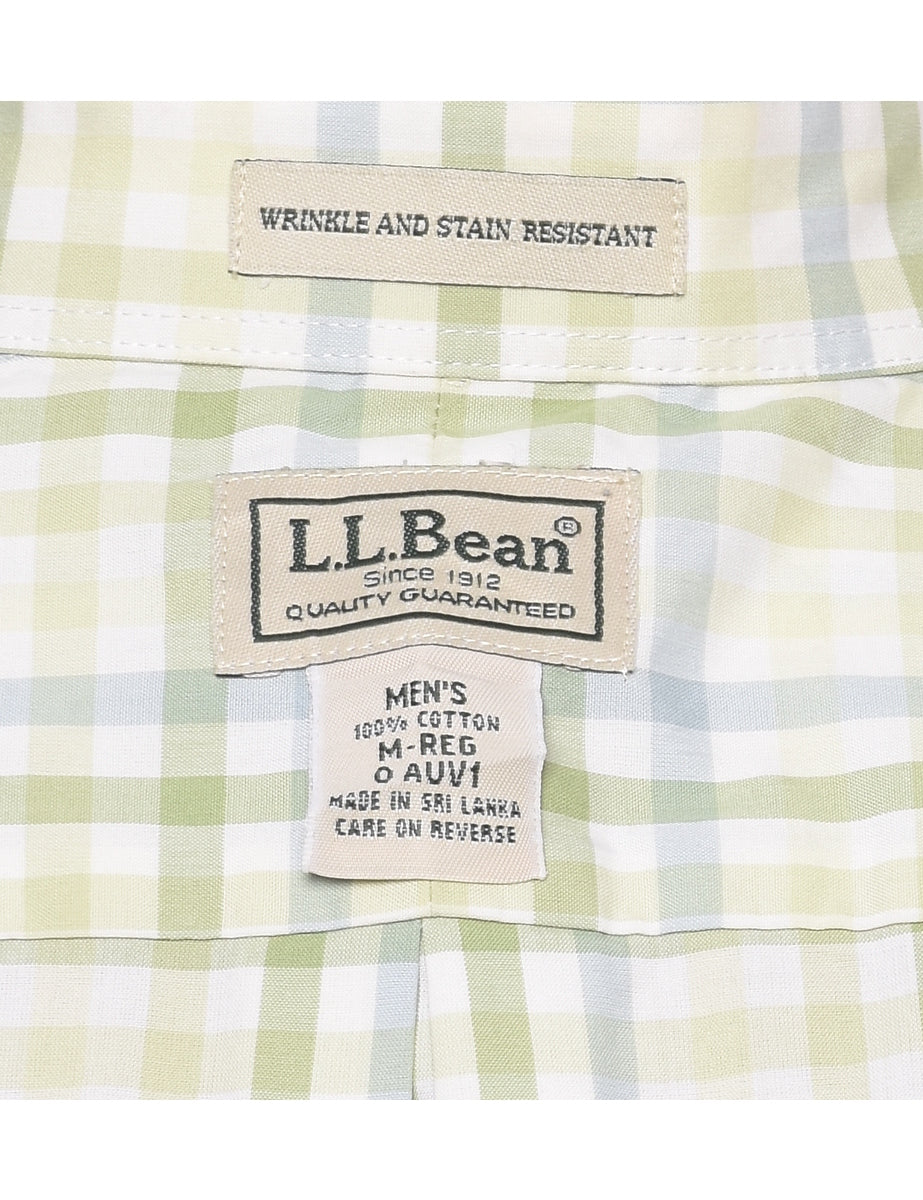 L. L. Bean long sleeved checked shirt in white with one pocket.