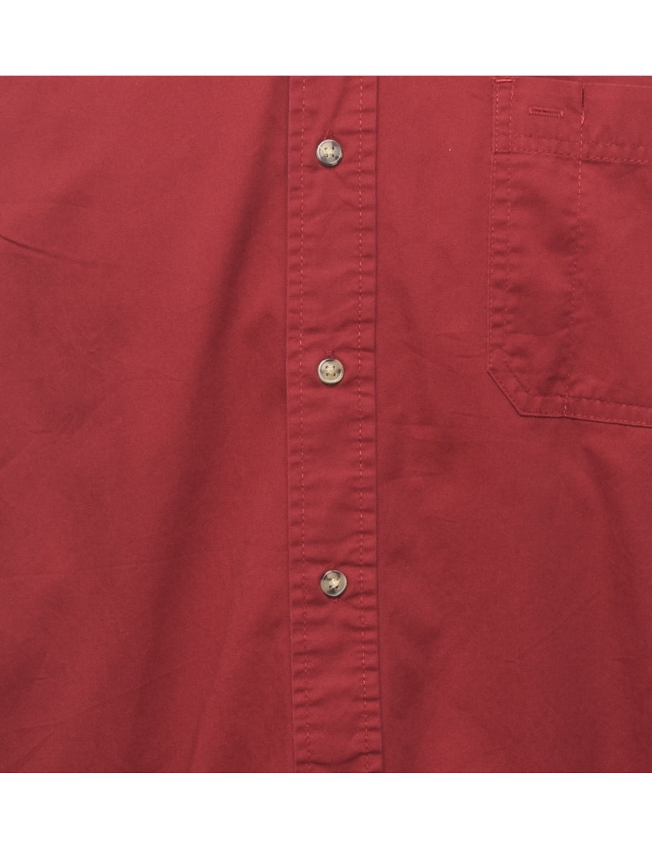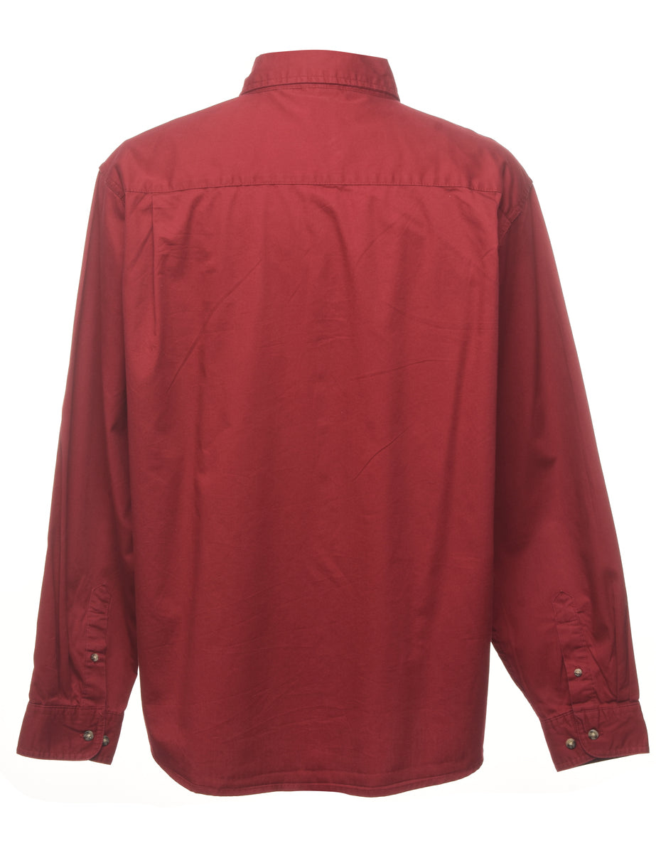 Long sleeved shirt. Comes in burgundy with one pocket.