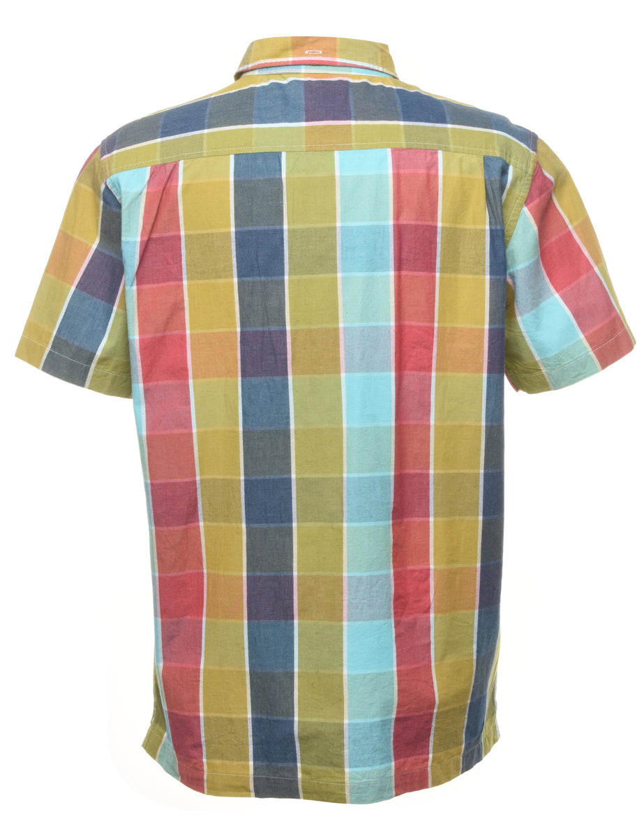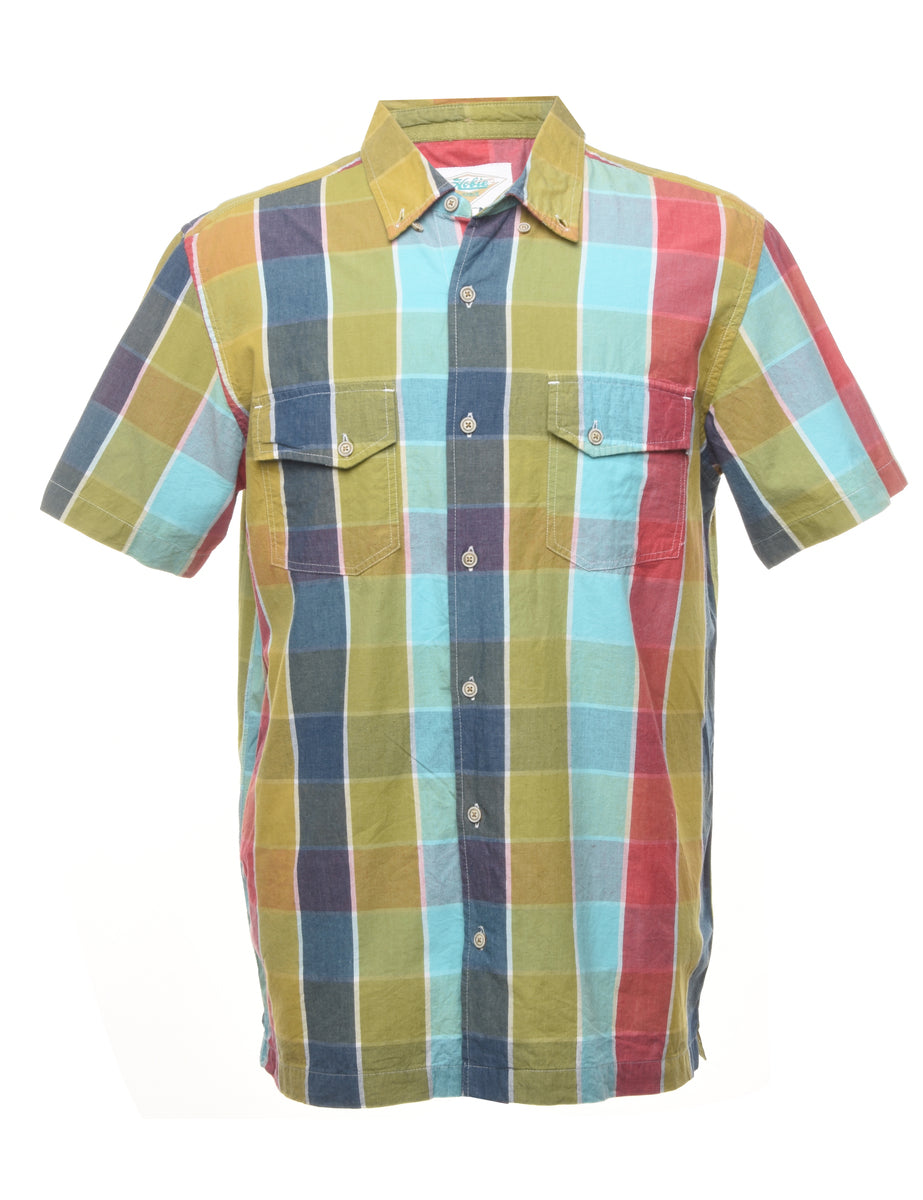 Short sleeve checked shirt in multi-colour with flap pockets.