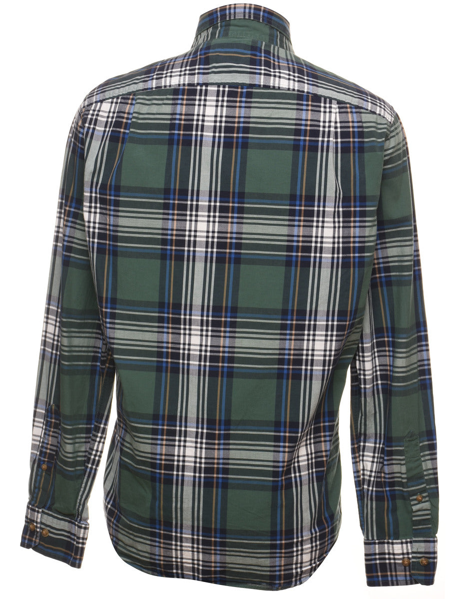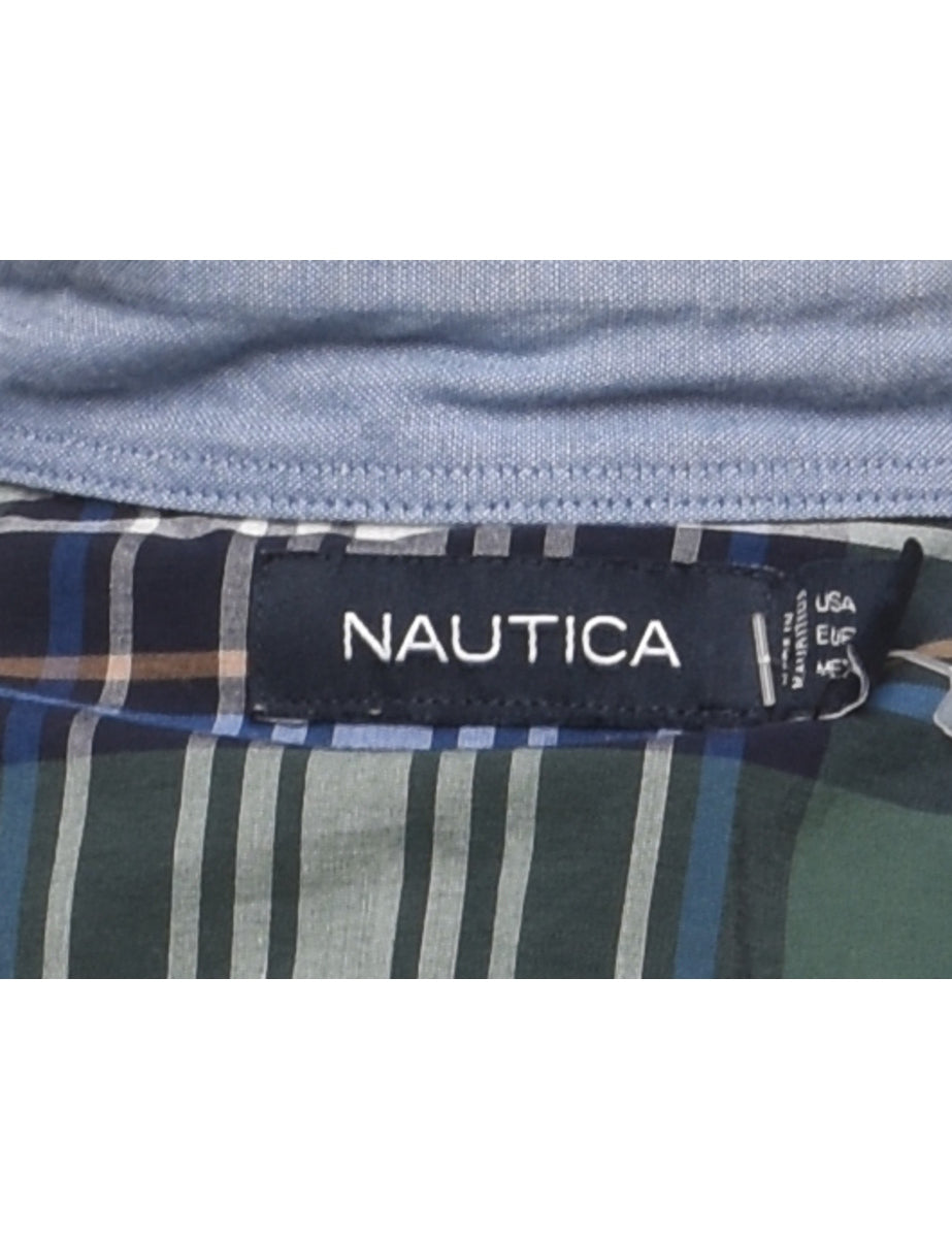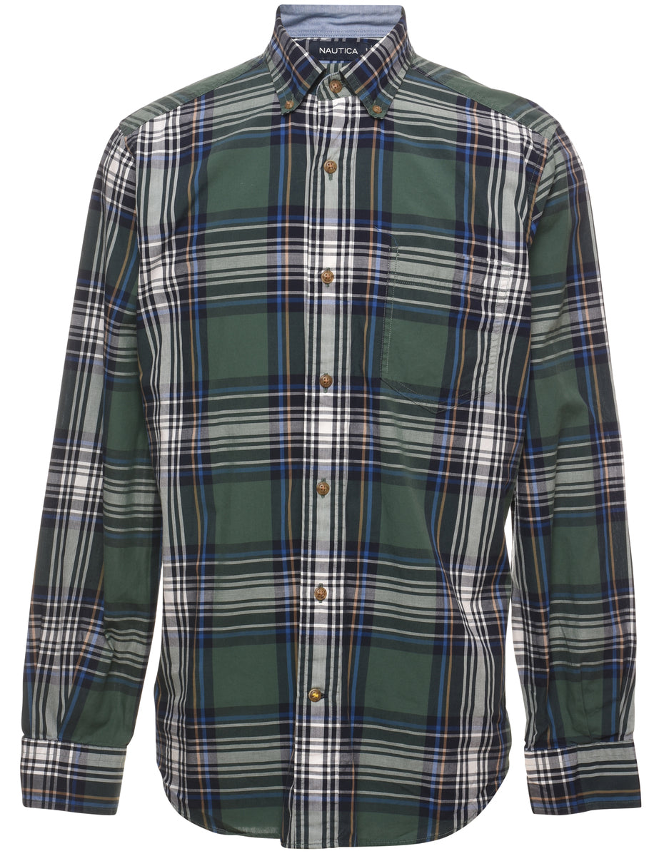 Long-sleeved dark green Nautica checked shirt complete with one pocket.