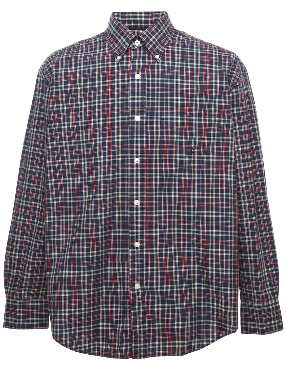 Long-sleeved checked Nautica in navy & red complete with one pocket.