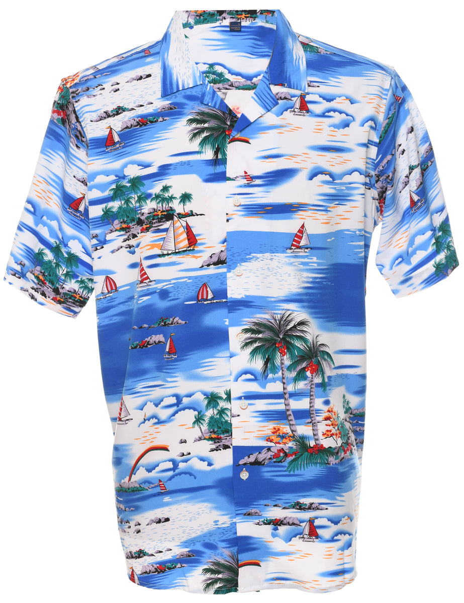 Novelty print hawaiian shirt comes in multi-colour with a revere front.