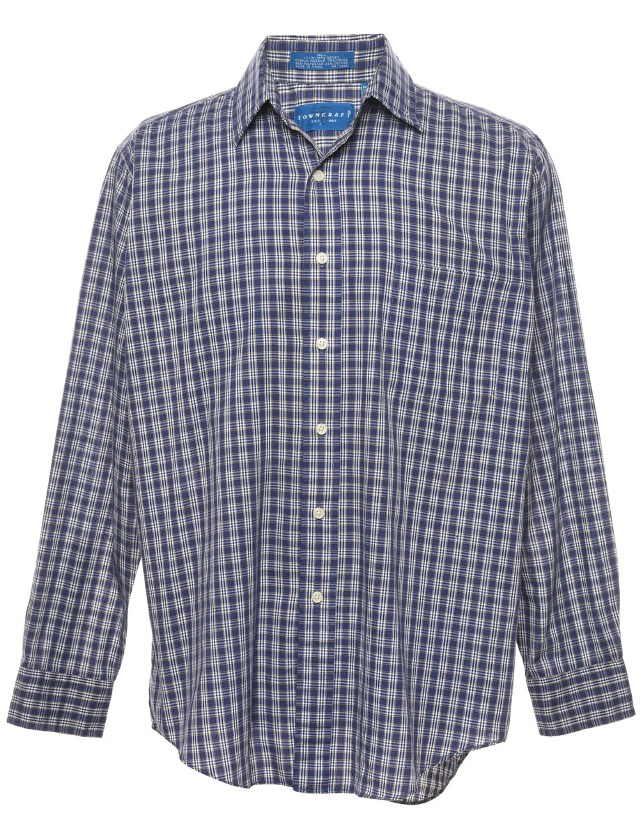Long sleeved checked shirt. Comes in purple with a classic collar and one pocket.