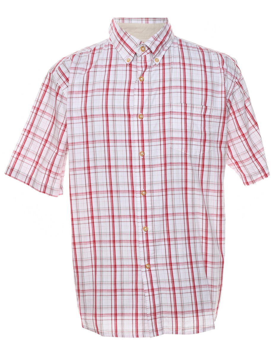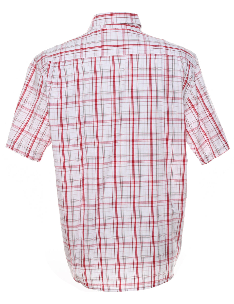Short sleeve checked shirt in white & red with one pocket. From the brand Wrangler.