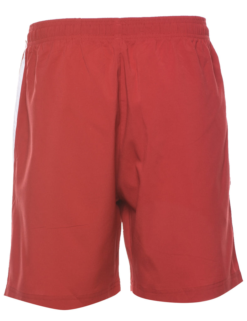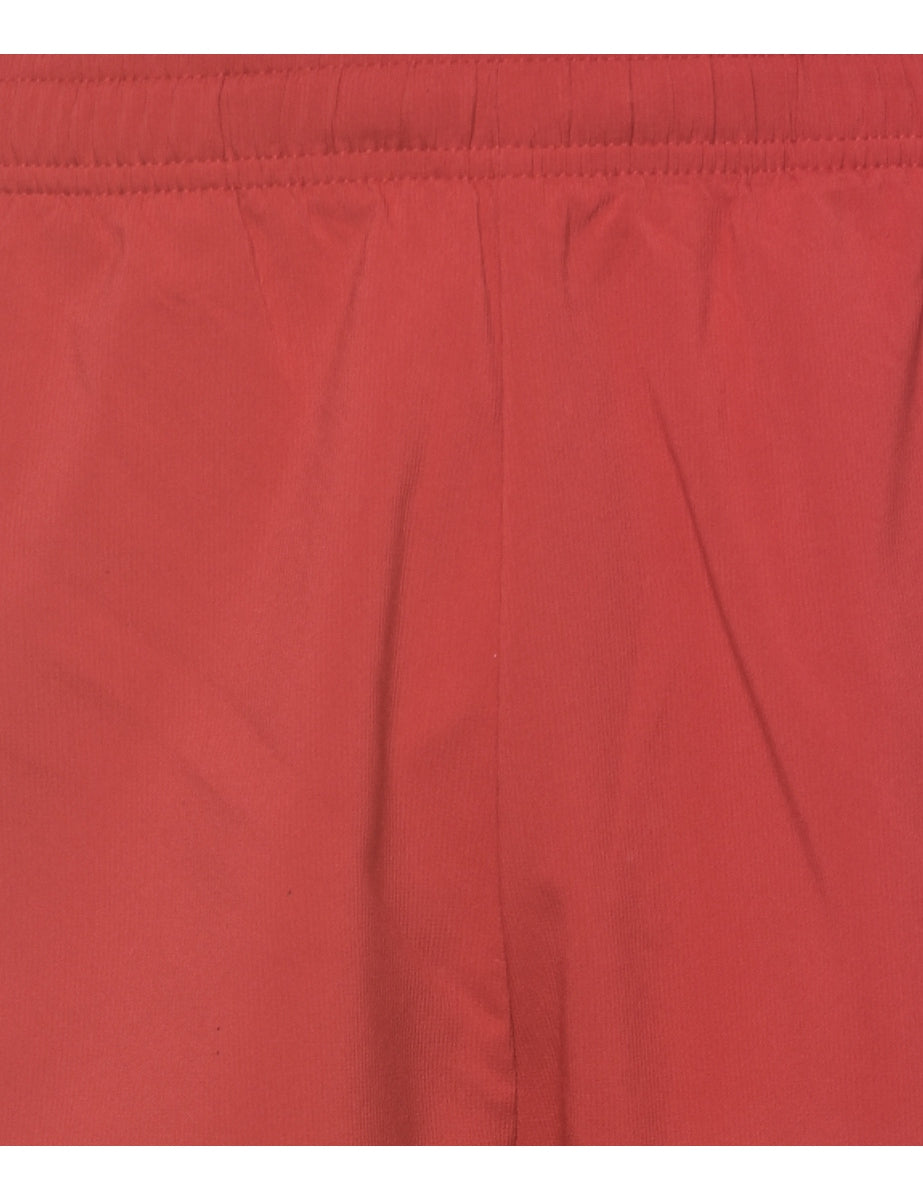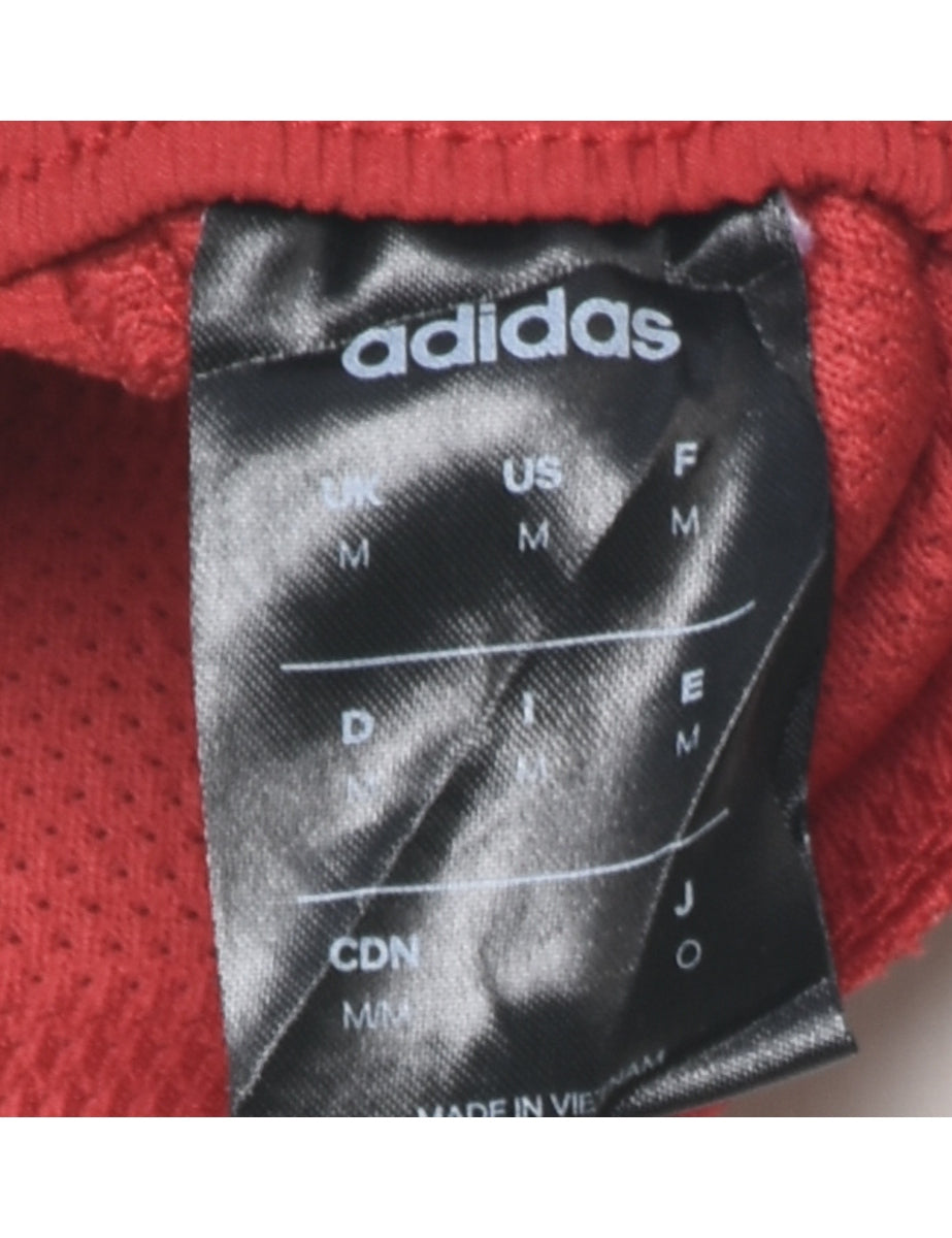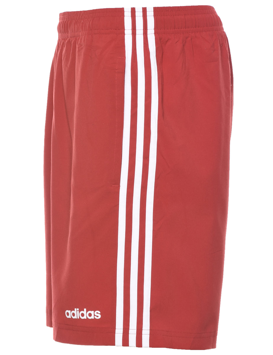 Adidas sport shorts in red with multiple pockets and a drawstring waist.