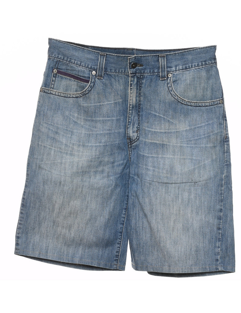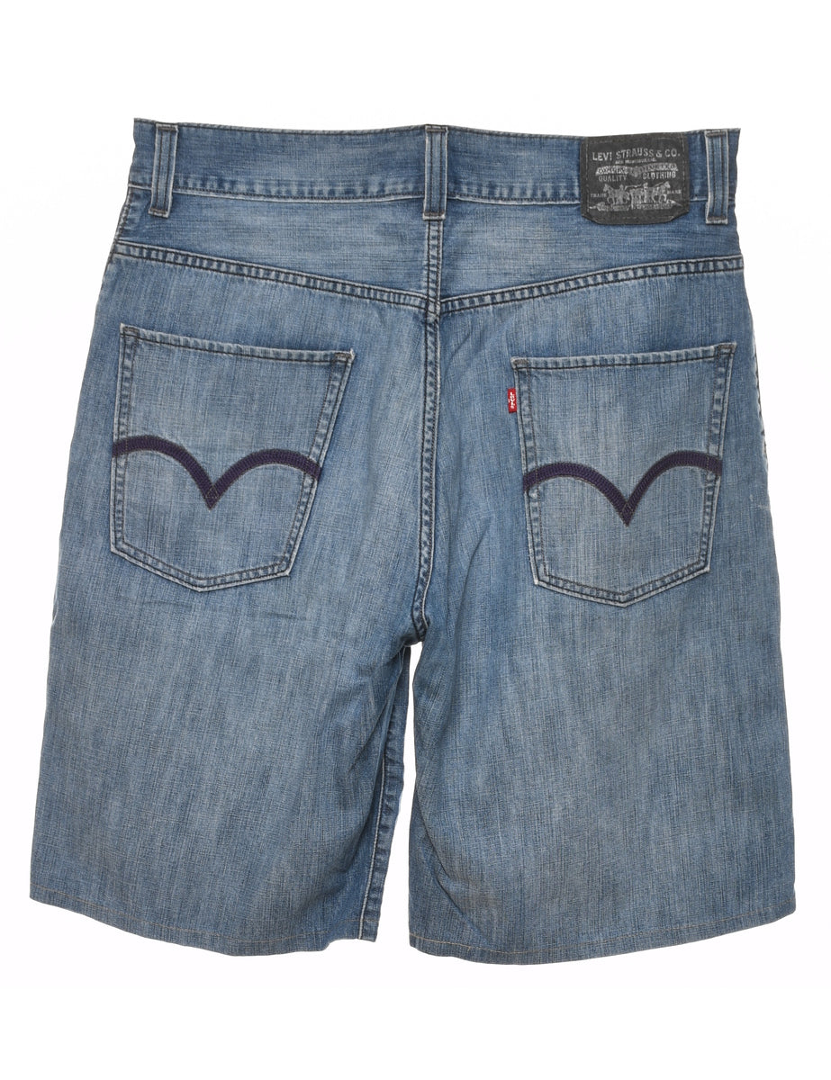 Medium wash Levi's denim shorts complete with multiple pockets.