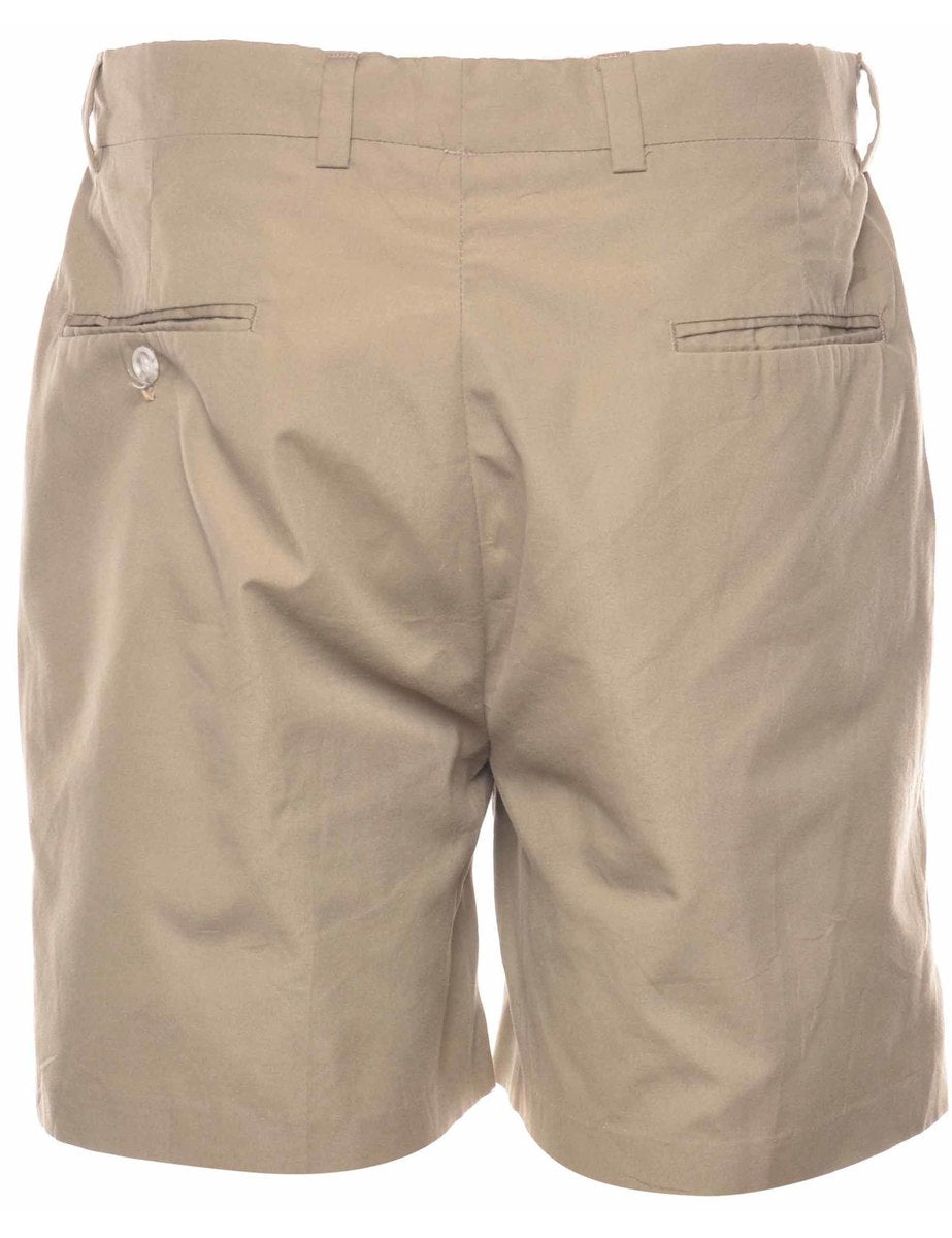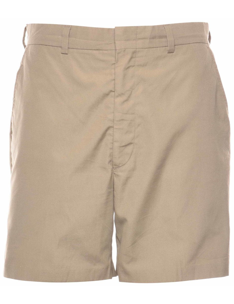 Straight leg beige chino shorts with pockets.