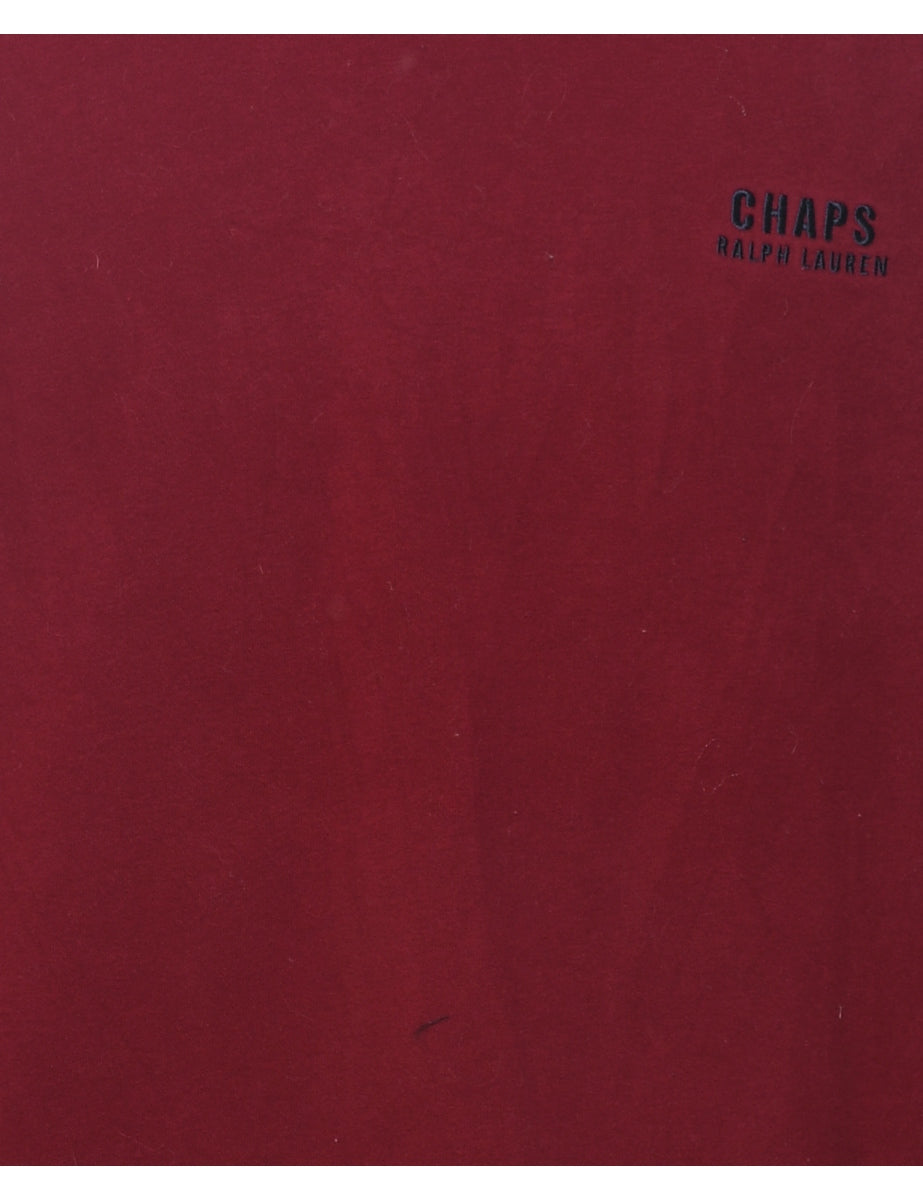 Chaps plain sweatshirt. Comes in maroon with raglan sleeves.