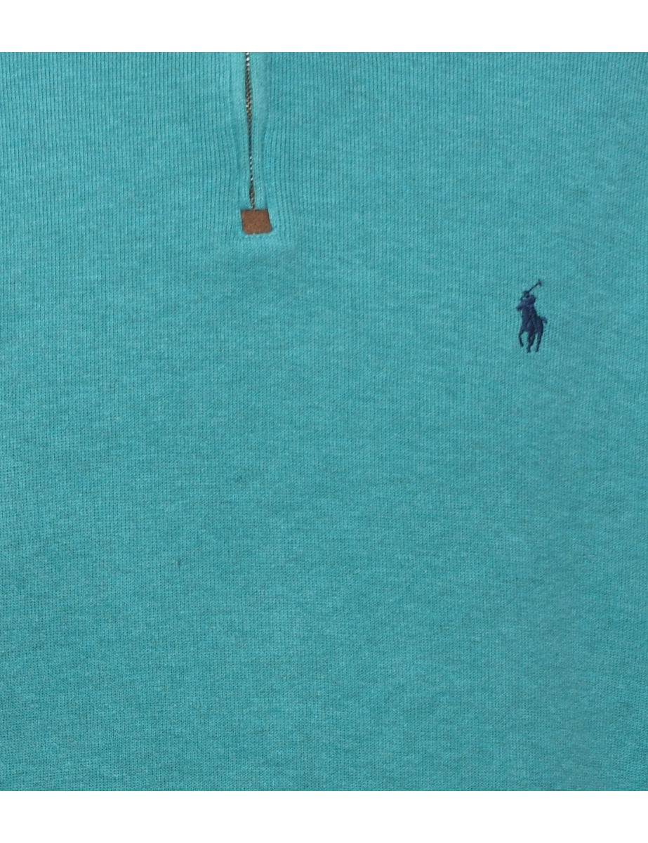 Quarter-zip teal embroidered Ralph Lauren sweatshirt.