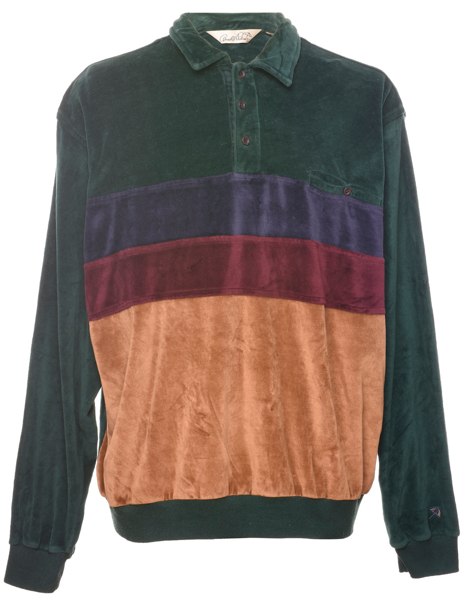 Vintage Velvet Colour Block Plain Sweatshirt - XL