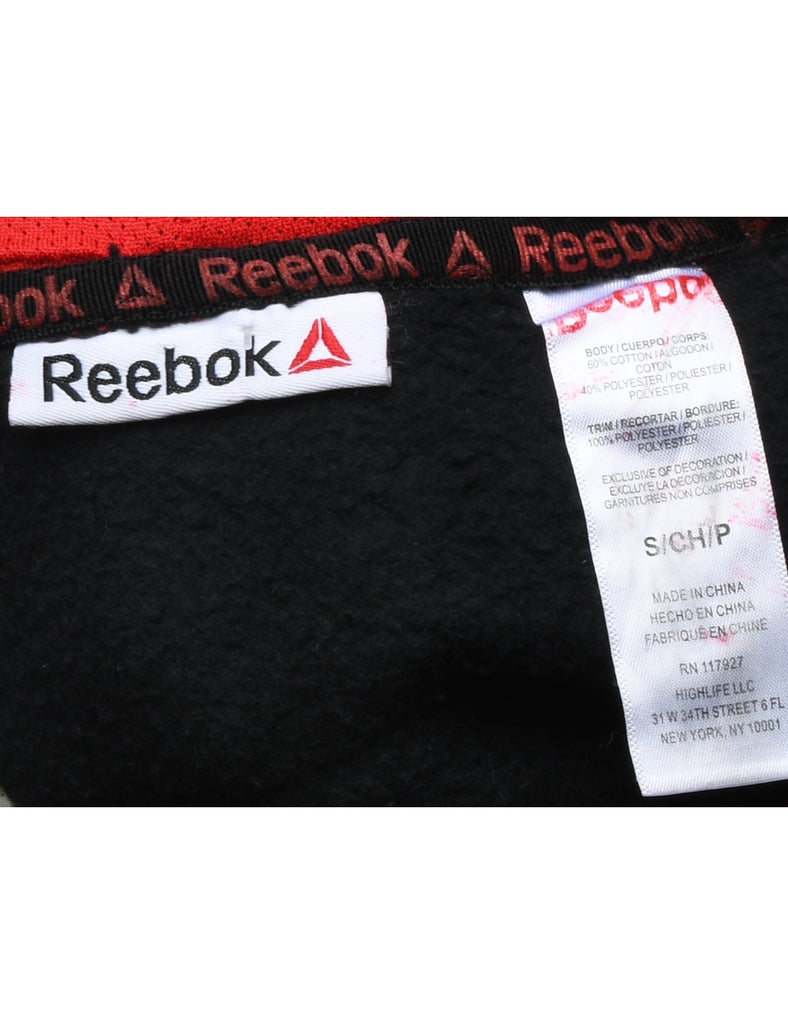 Vintage Reebok Black & Grey Printed Hoodie - S