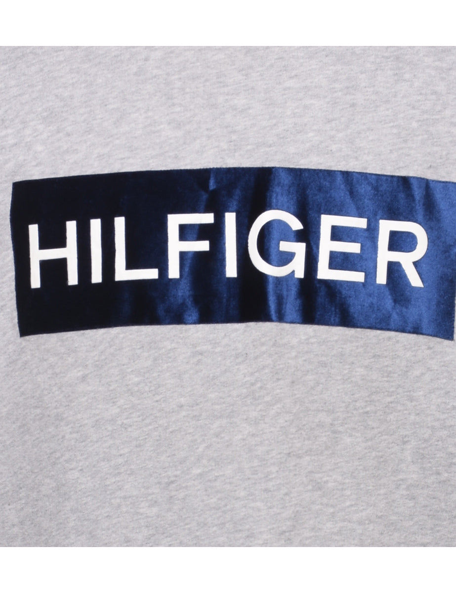 Grey printed Tommy Hilfiger round-neck sweatshirt.