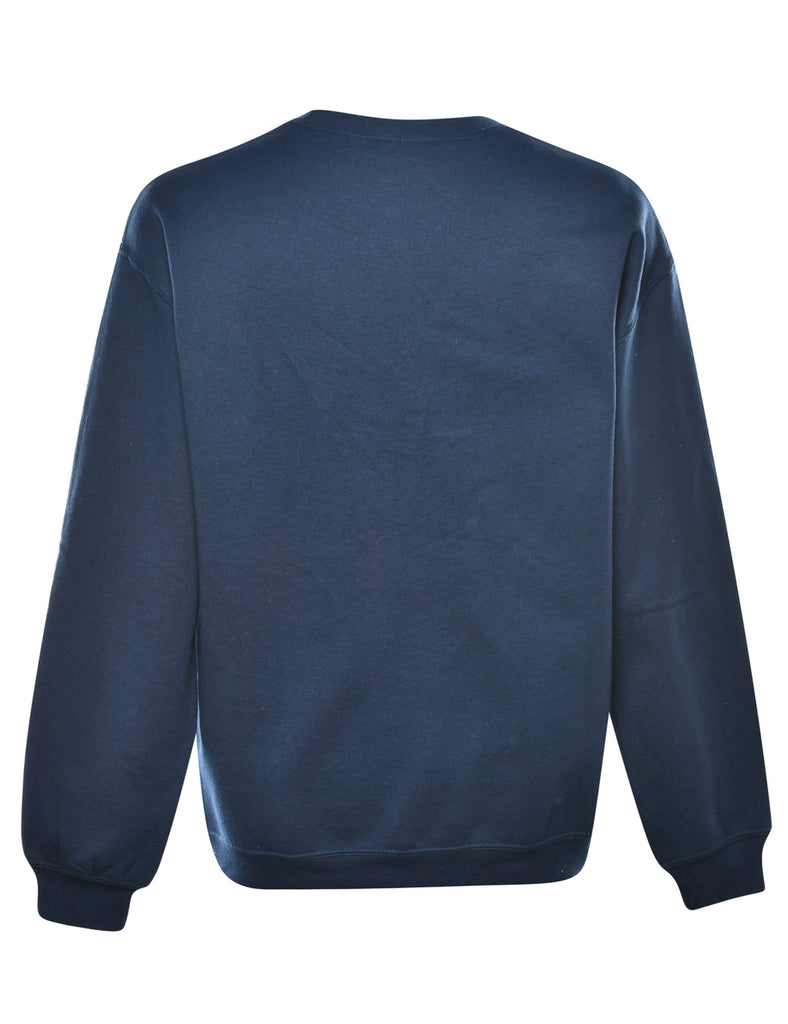 Young life printed sweatshirt comes in navy. The size label mentions M but based on the actual measurements we consider it a size L.