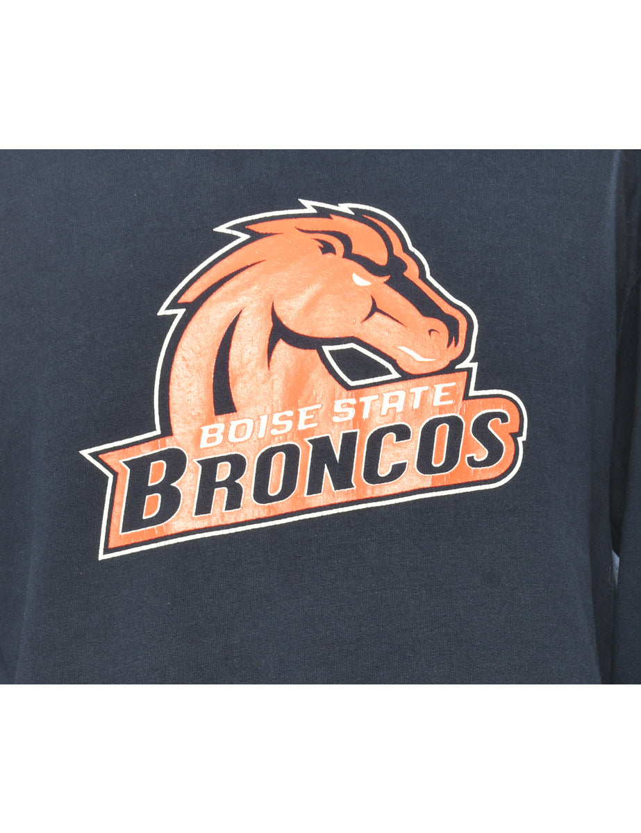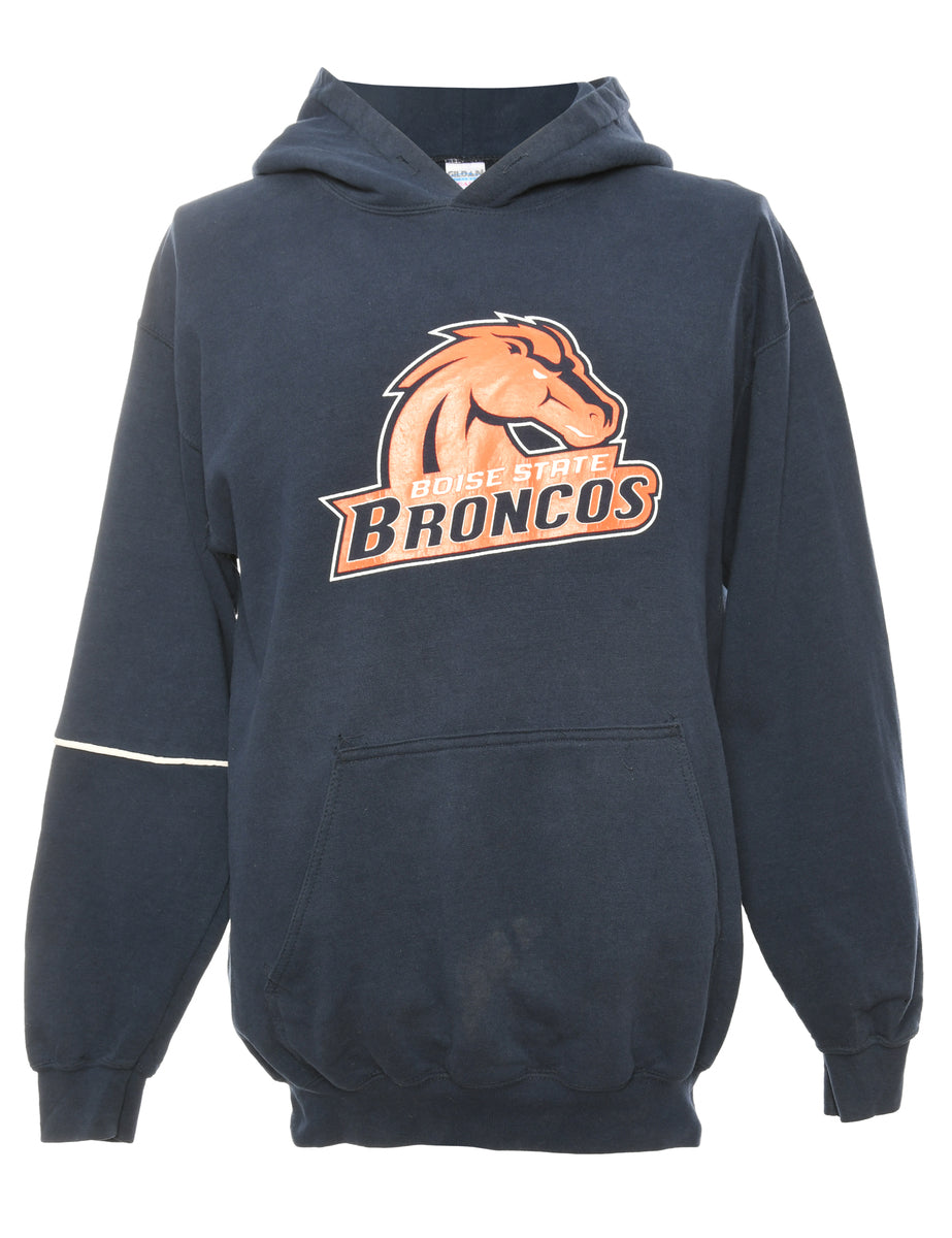 Broncos Football printed sweatshirt comes in navy with two pockets.