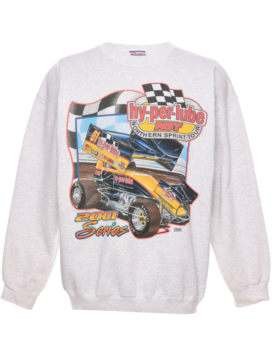 Hyperlube printed sweatshirt comes in marl grey with a drop shoulder.