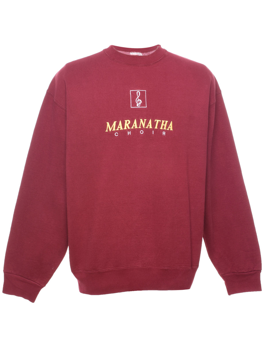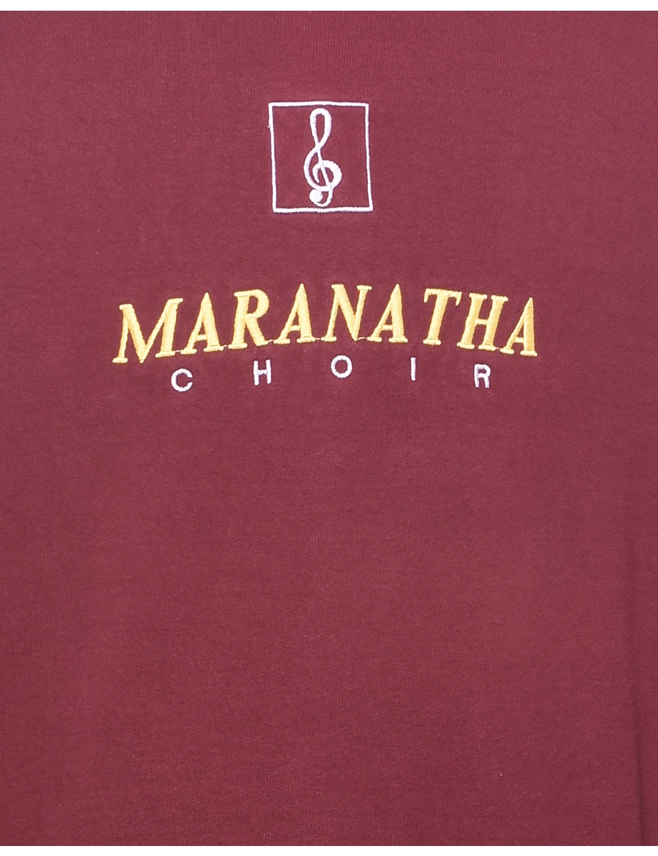Maranatha Choir maroon sweatshirt complete with a drop shoulder.
