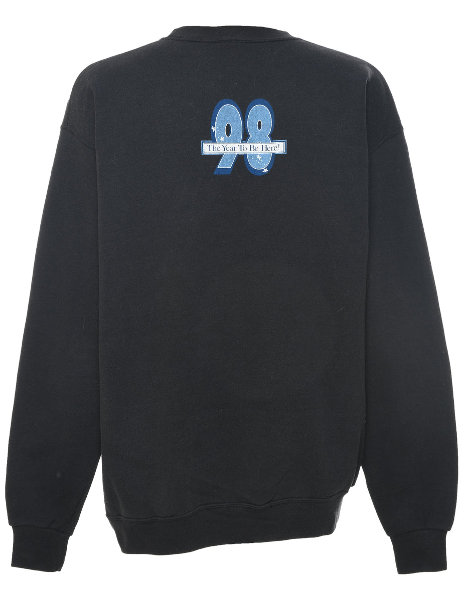 Black mickey mouse cartoon sweatshirt with a drop shoulder.