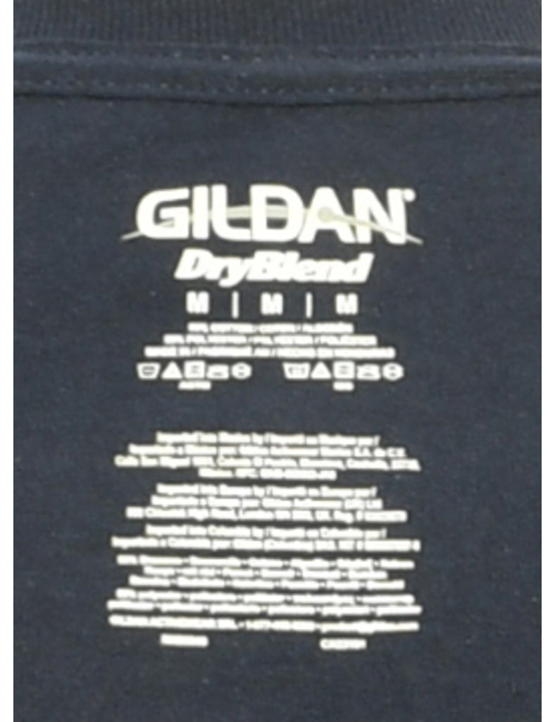 Plain t-shirt in blue with one pocket from the brand Gildan.