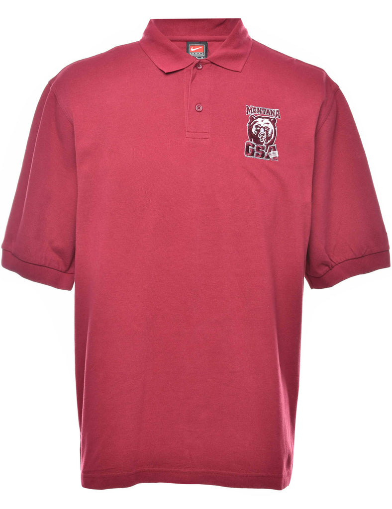 Button front polo shirt in maroon with a classic collar. From the brand Nike.