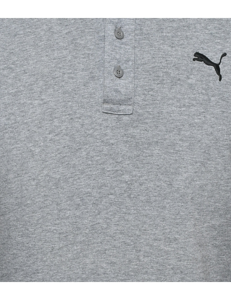 Puma button front polo t-shirt in grey with a classic collar.