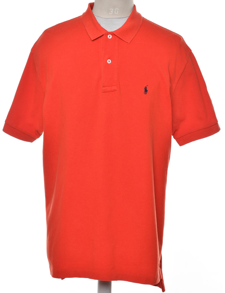 Ralph Lauren polo t-shirt in orange with a button front neck.
