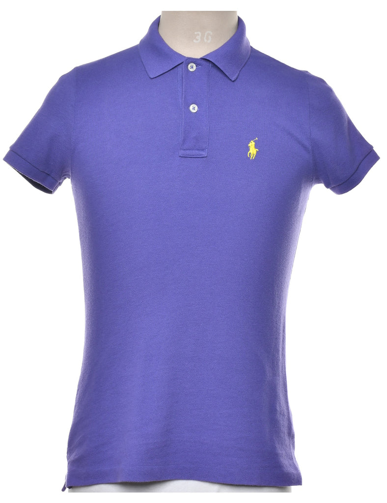 Ralph Lauren polo t-shirt in purple with a button front neck.