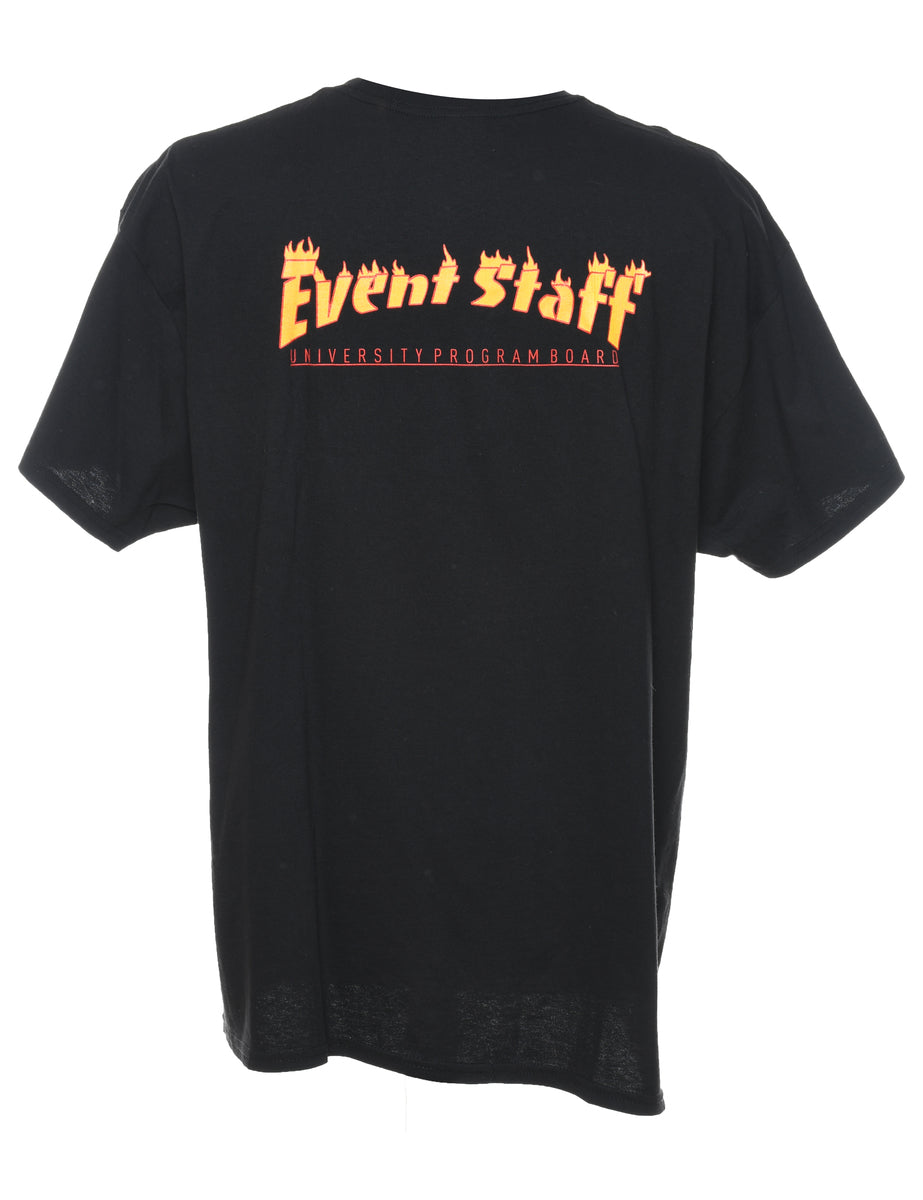 Vintage Black & Orange Flame Design Printed T-shirt - XL