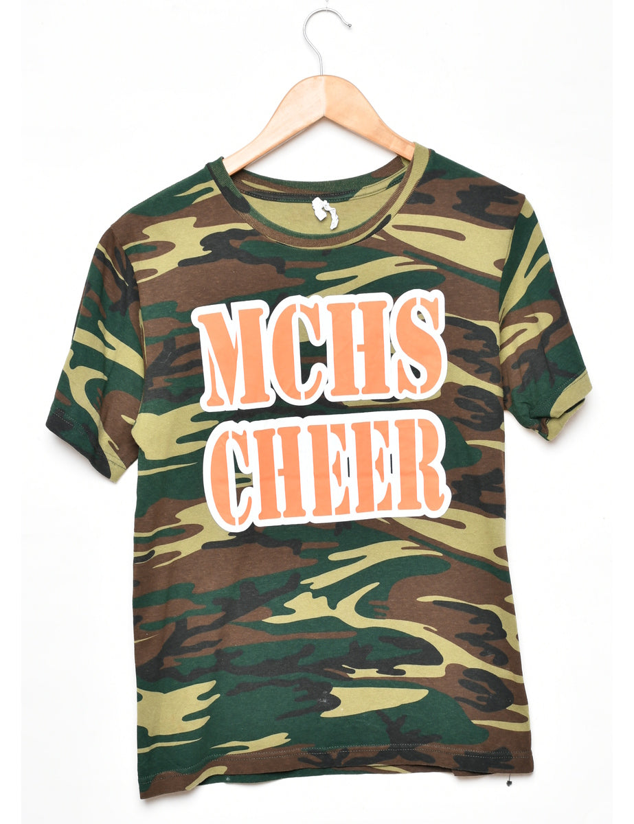 Mchs Cheer printed t-shirt with camouflage print. Comes in multi-colour.