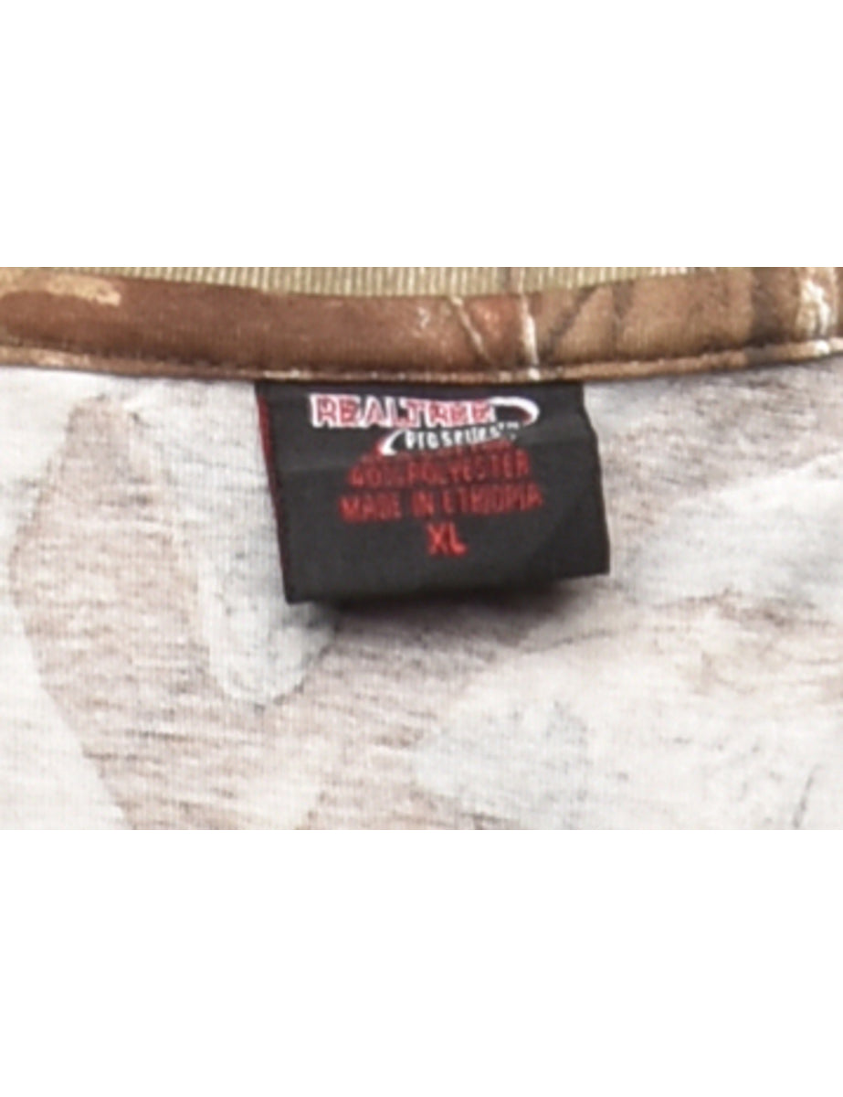 Cotton t-shirt with camouflage print. Comes in brown with one pocket.