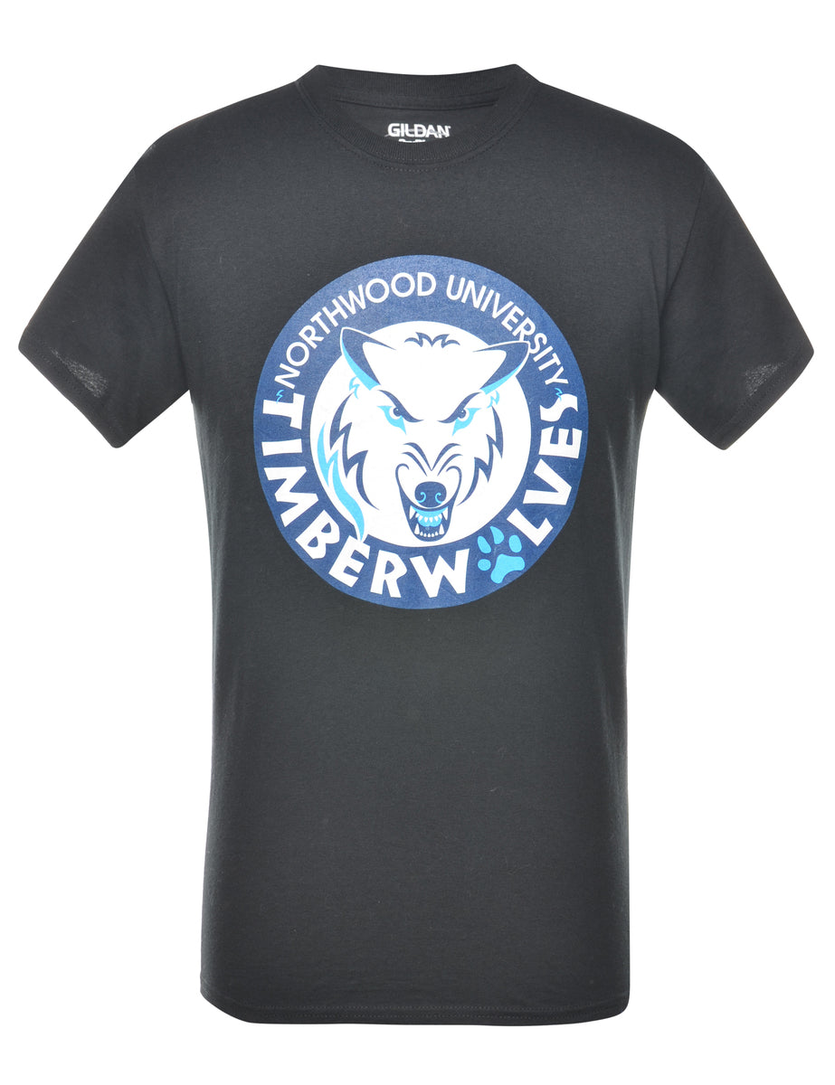 Vintage Gildan Northwood University Timber Wolves Printed Blue & Black T-shirt - S