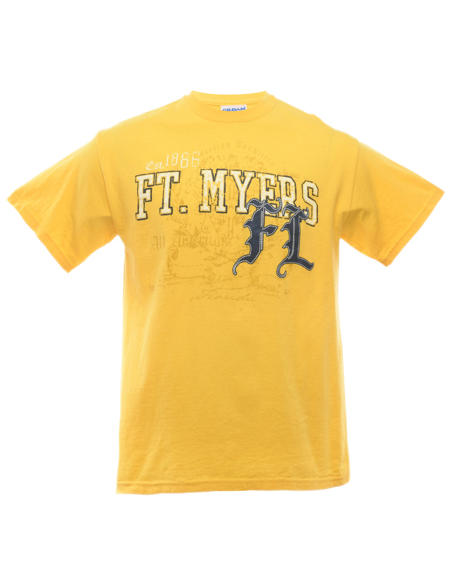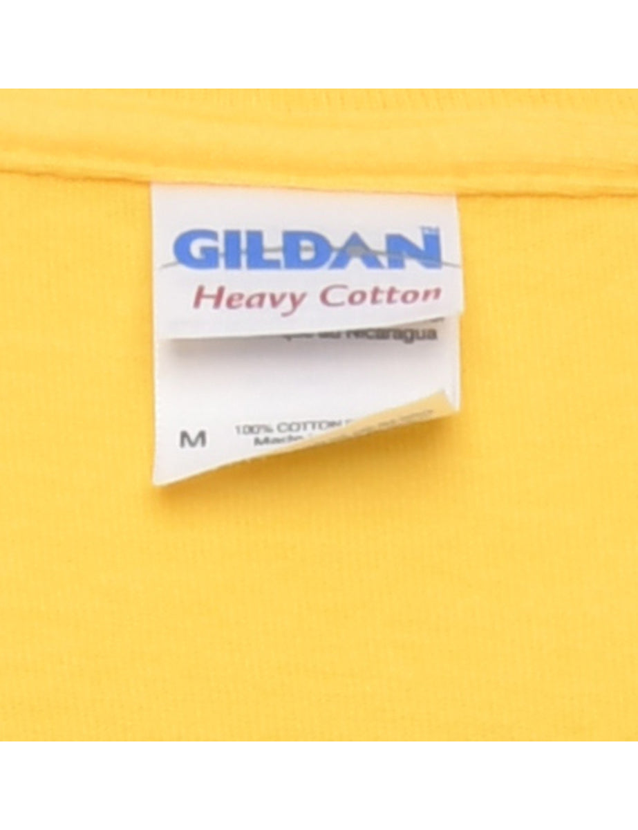Gildan printed t-shirt comes in yellow.
