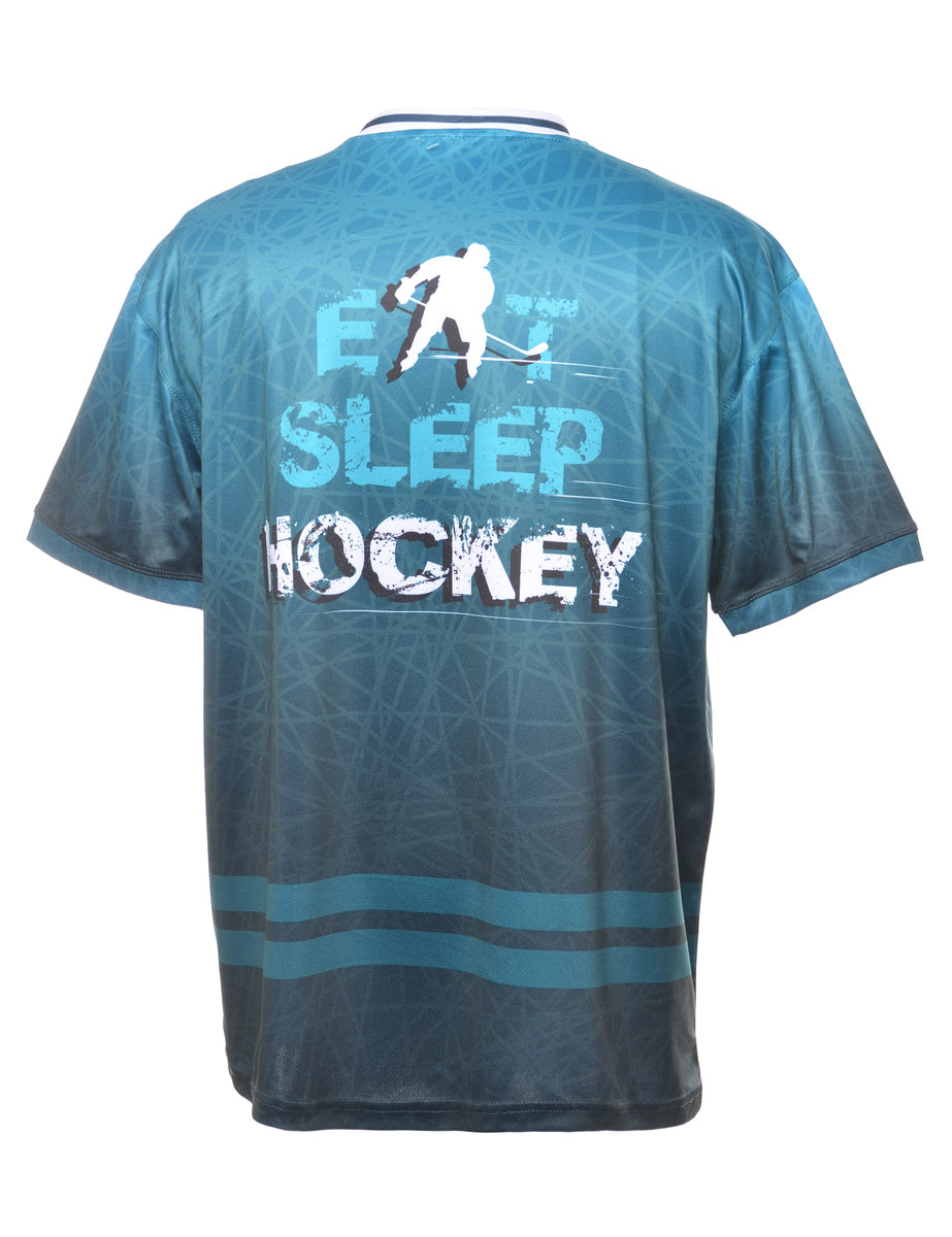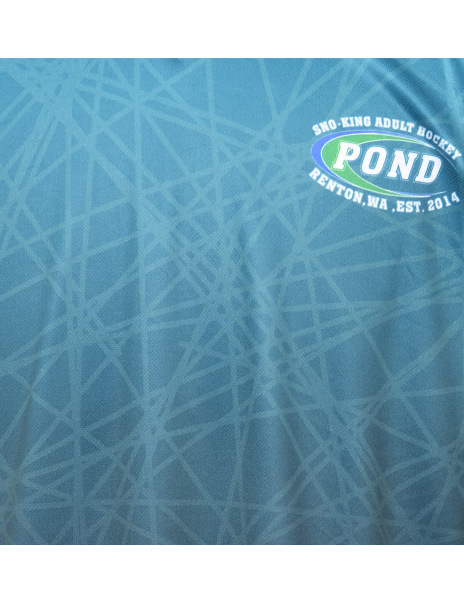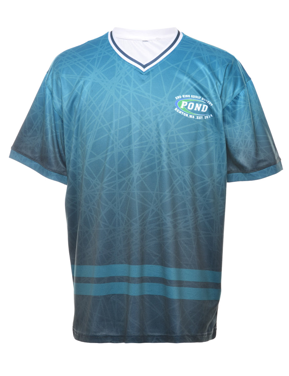 Hockey sports t-shirt in teal with a v-neck.