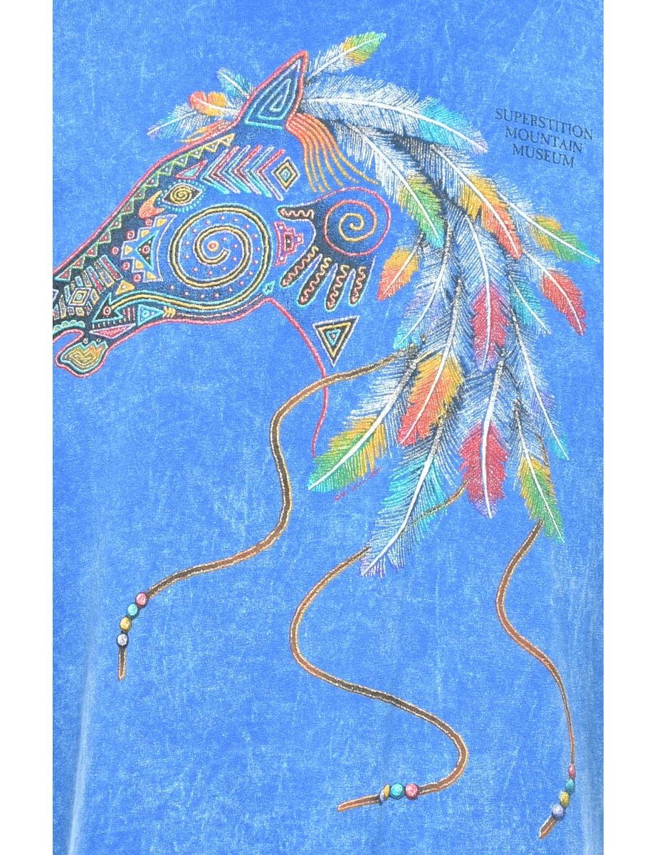 Cotton blue animal t-shirt with horse print.