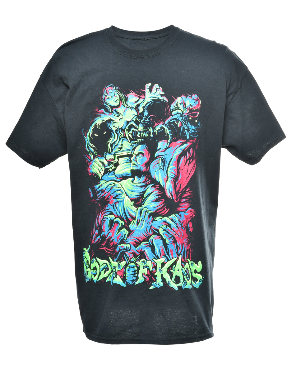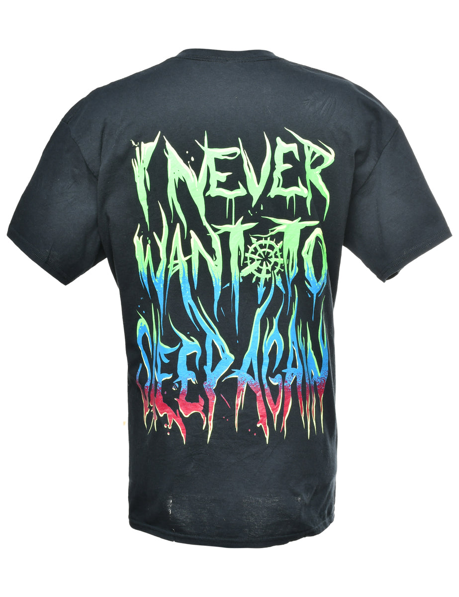 Godz of Kaos I never want to sleep again printed t-shirt comes in black.