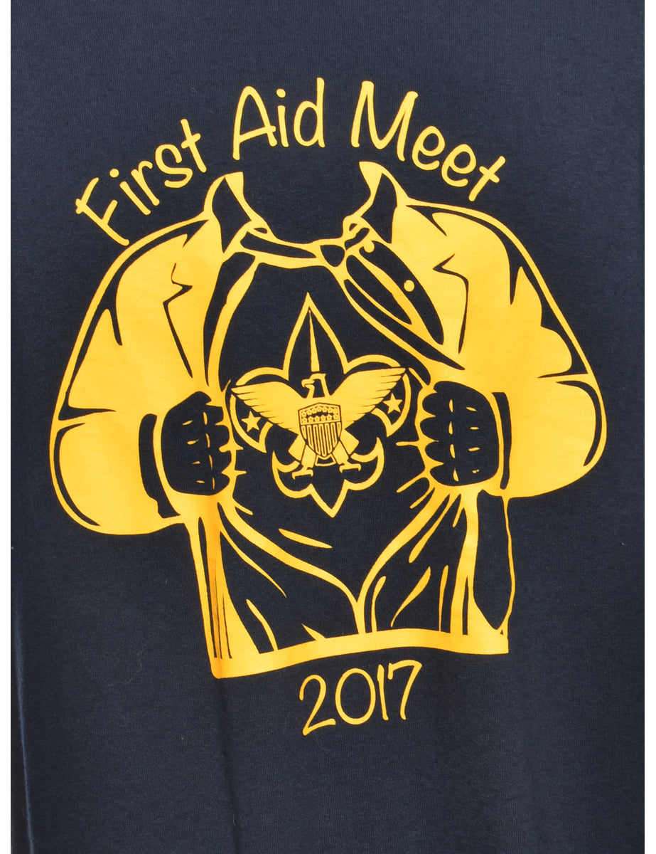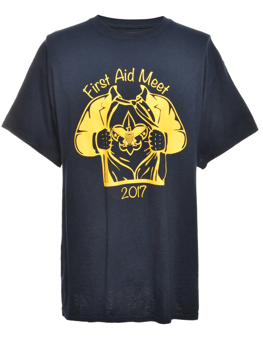 Vintage Navy Printed T-shirt - L