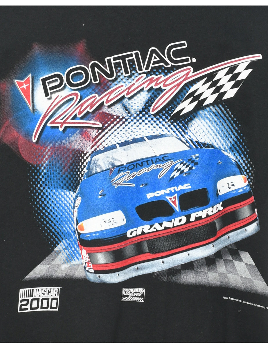 Pontiac racing printed t-shirt comes in black with a round neck.