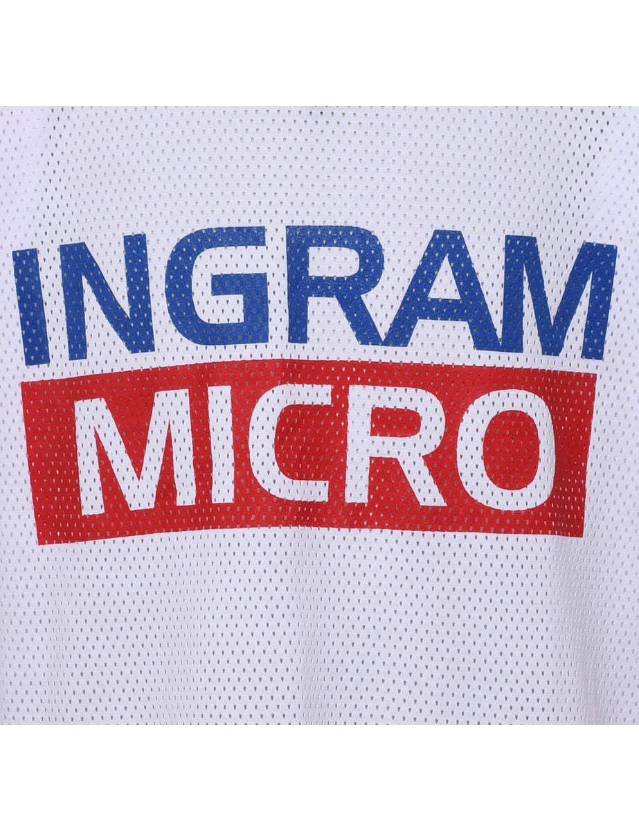 Mesh printed sports top. Comes in white, red & navy complete with a v-neck.
