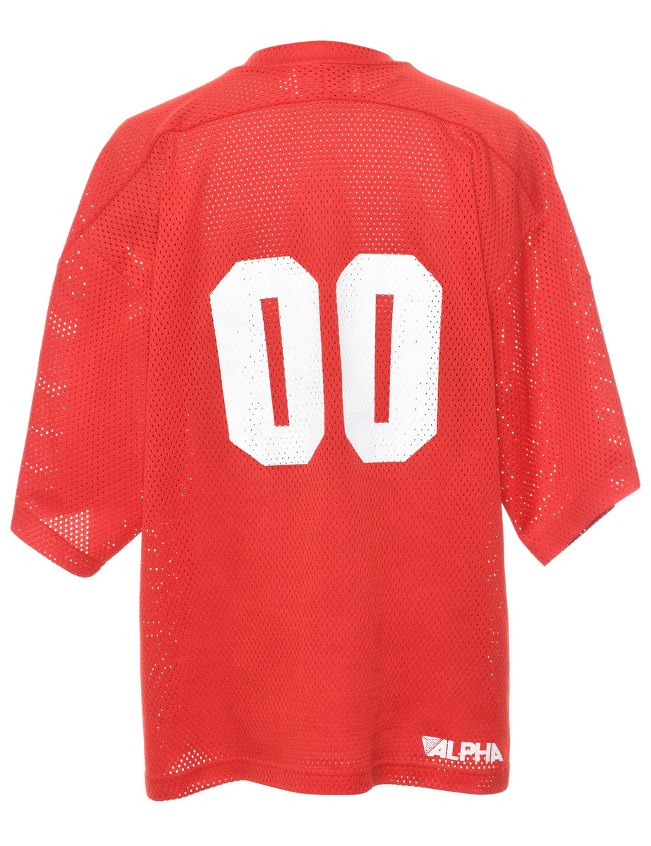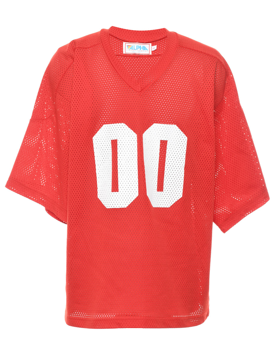 Vintage Red & White Printed Mesh T-shirt - L