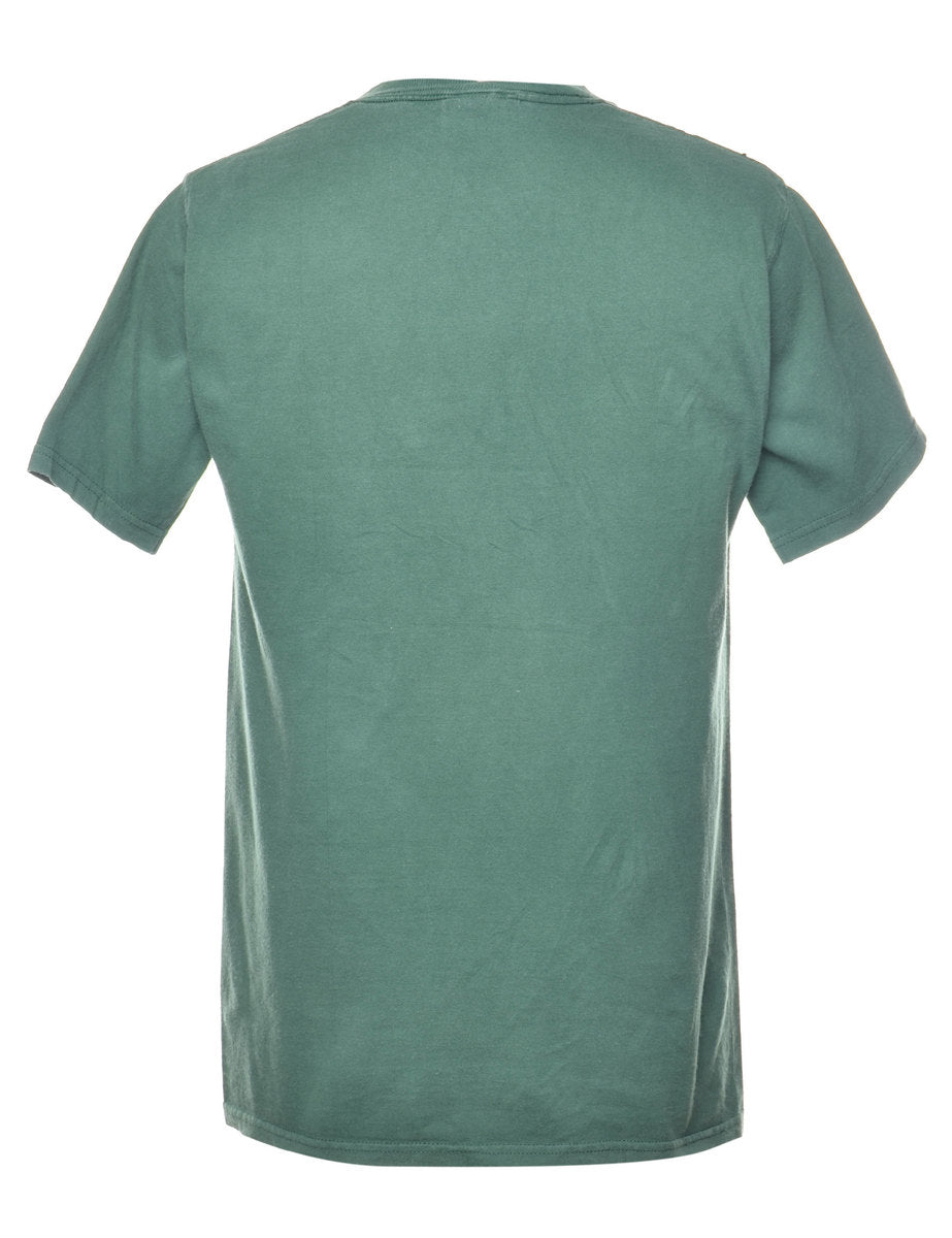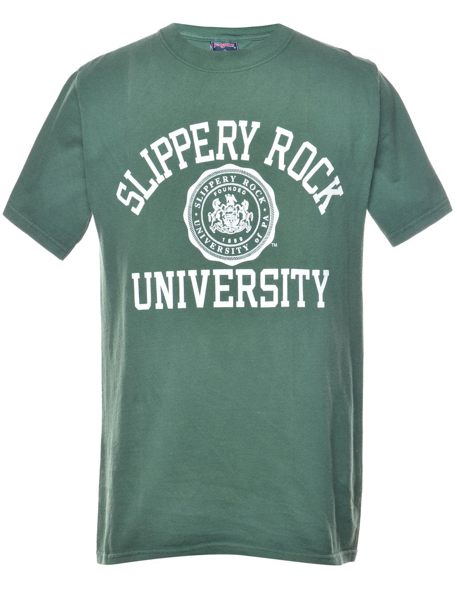 Slippery rock university printed t-shirt in dark green.