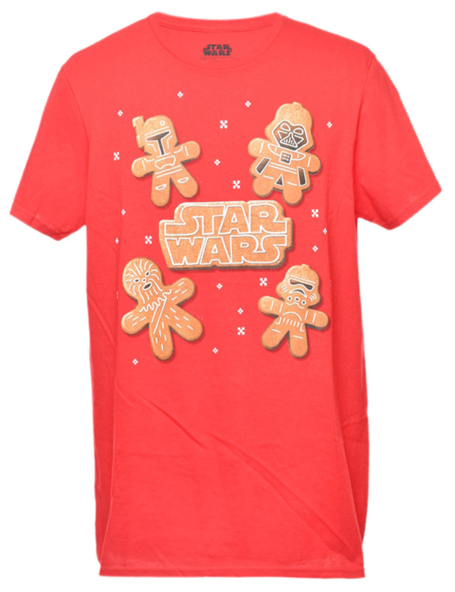 Star Wars gingerbread man printed t-shirt in red.
