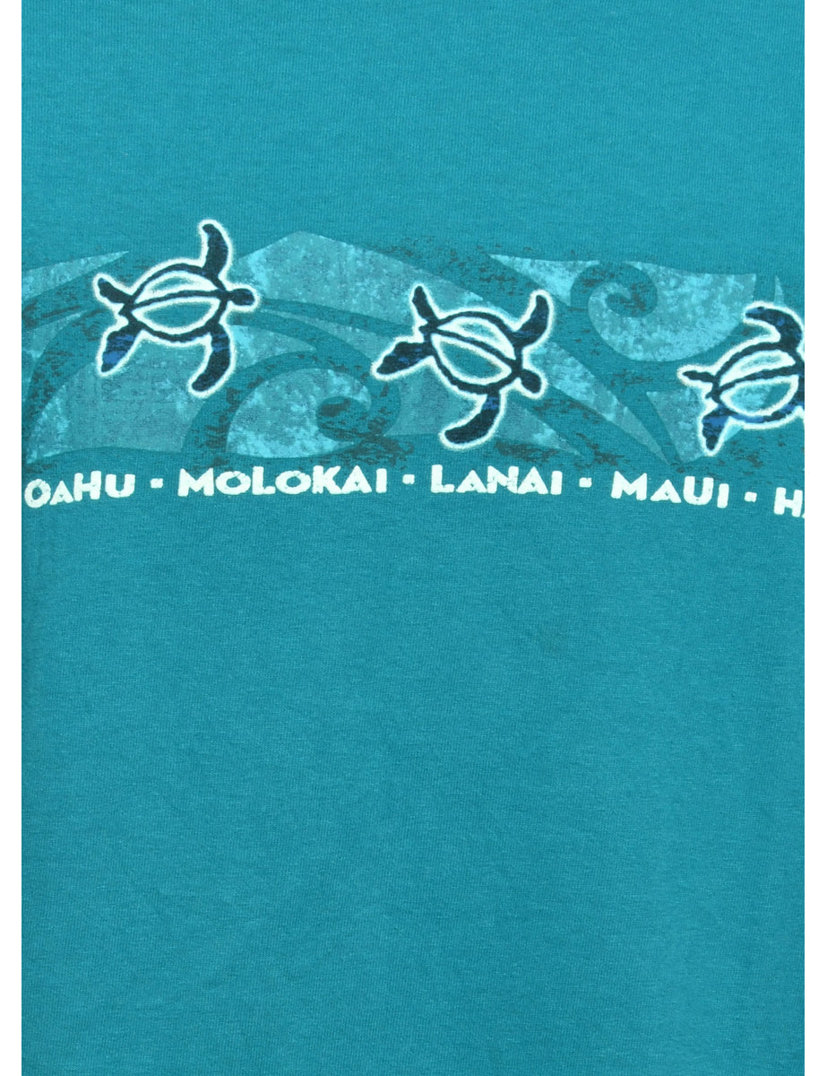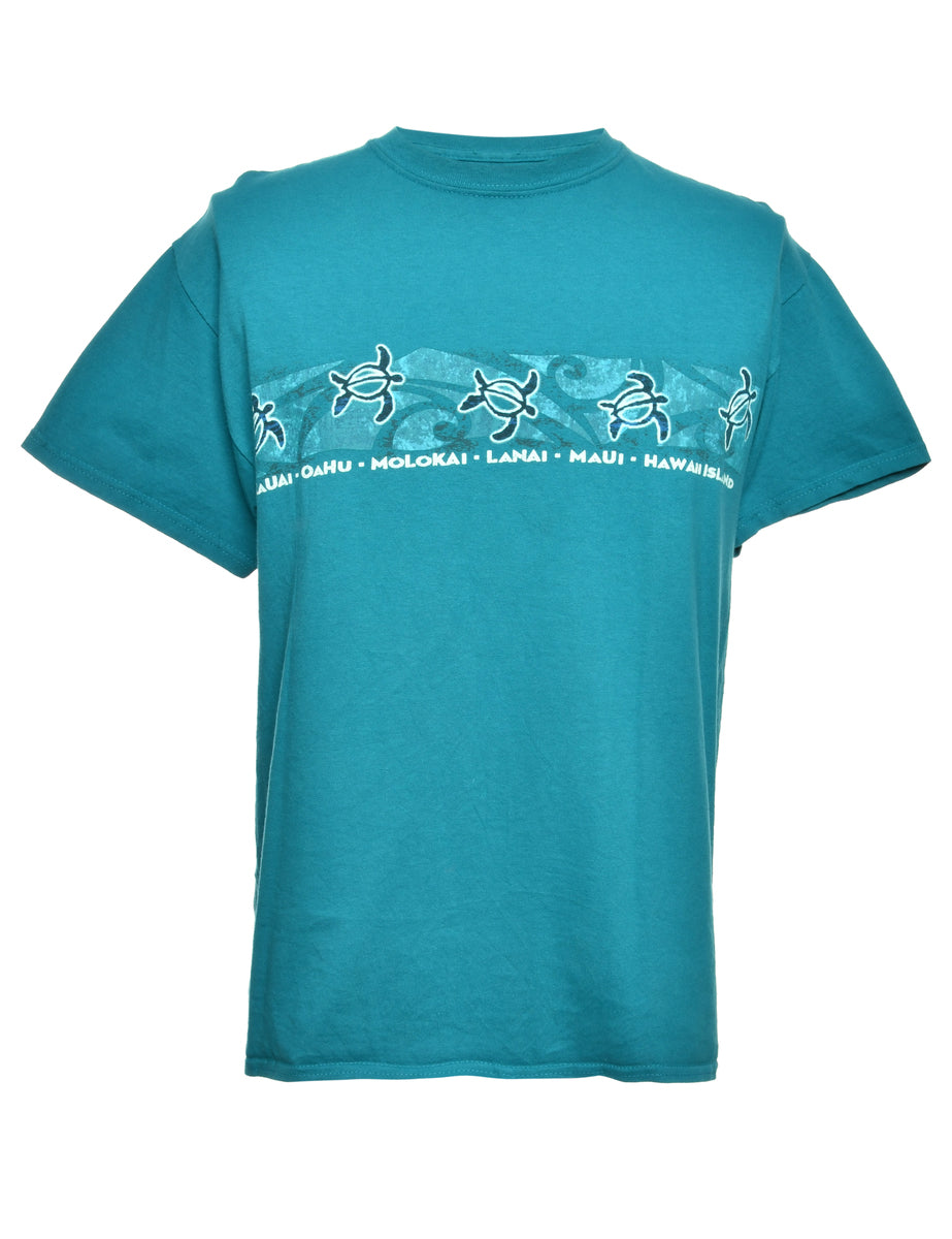 Vintage Teal Printed T-shirt - L