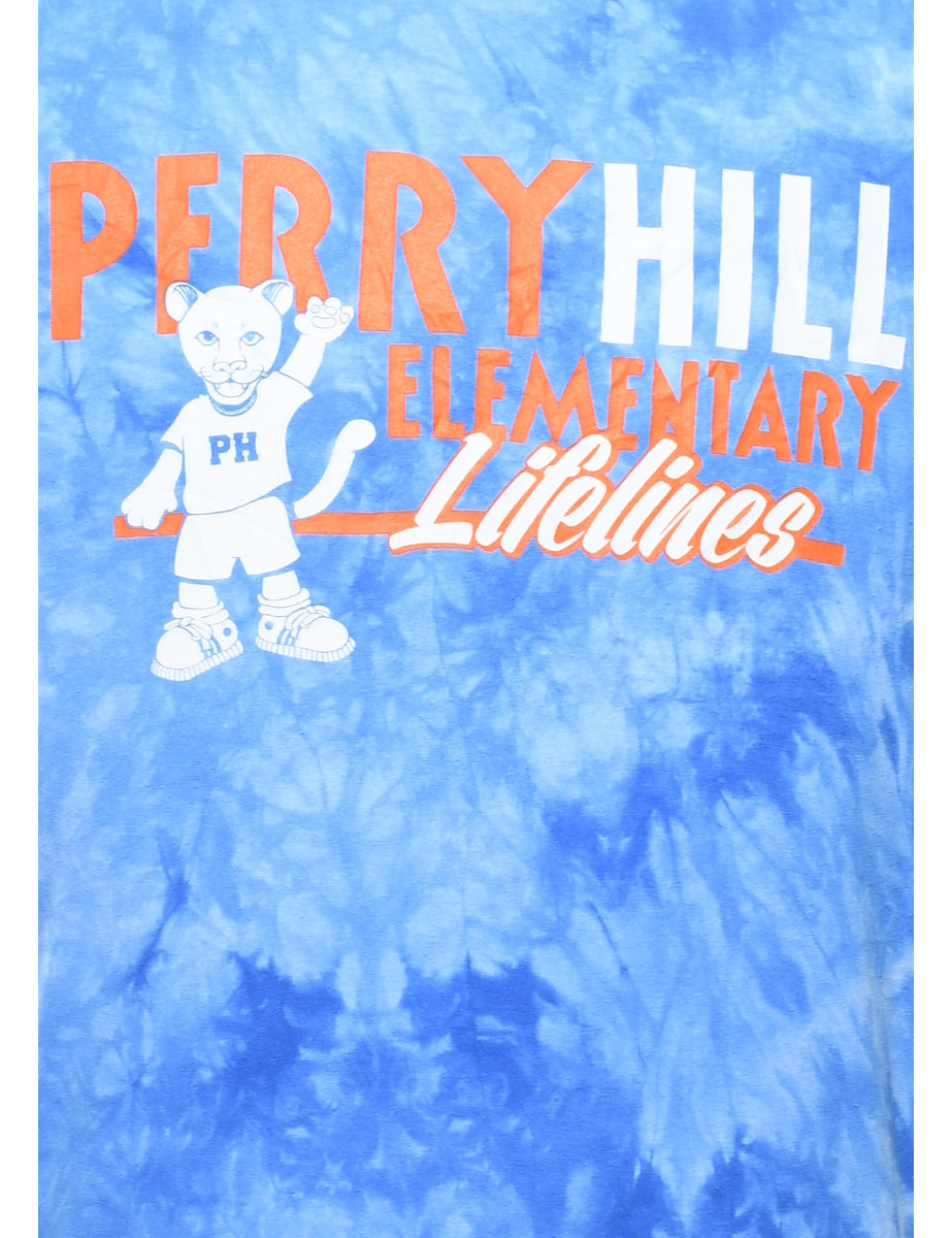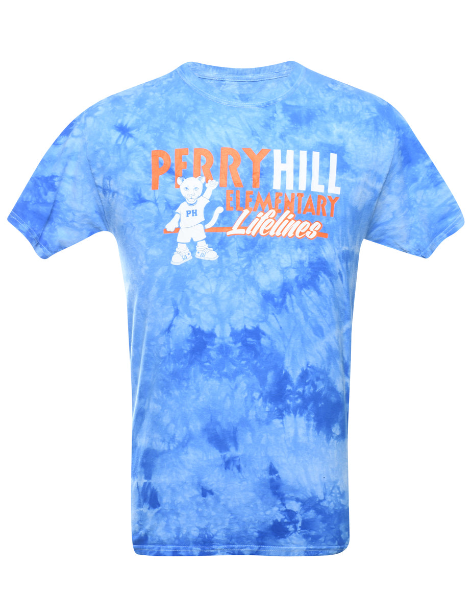 Tie dyed perry hill elementary lifelines t-shirt in blue.