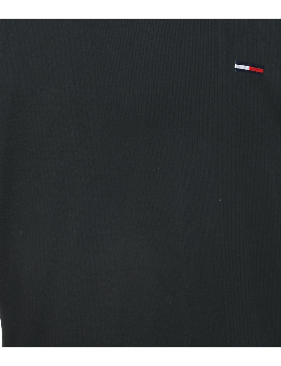 Tommy Hilfiger long sleeved plain t-shirt in black with a round neck.
