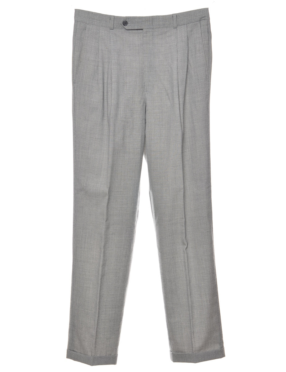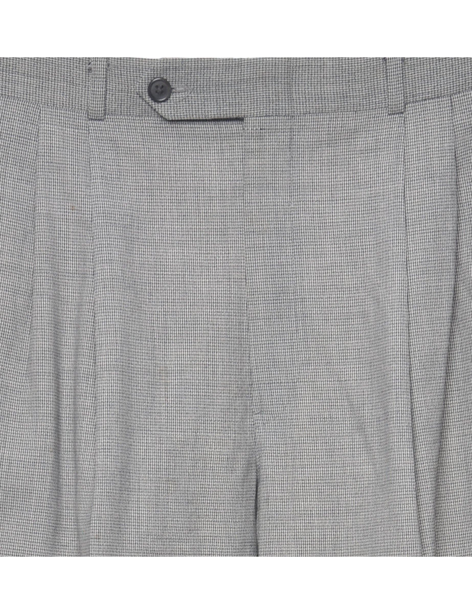 Classic trousers with checked pattern. Comes in grey with pleating and multiple pockets.